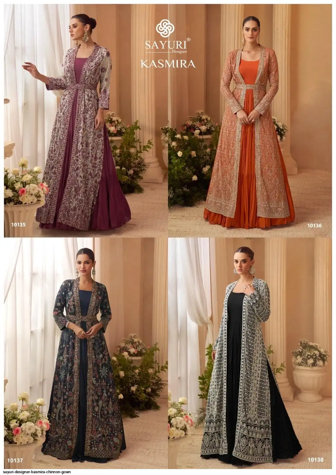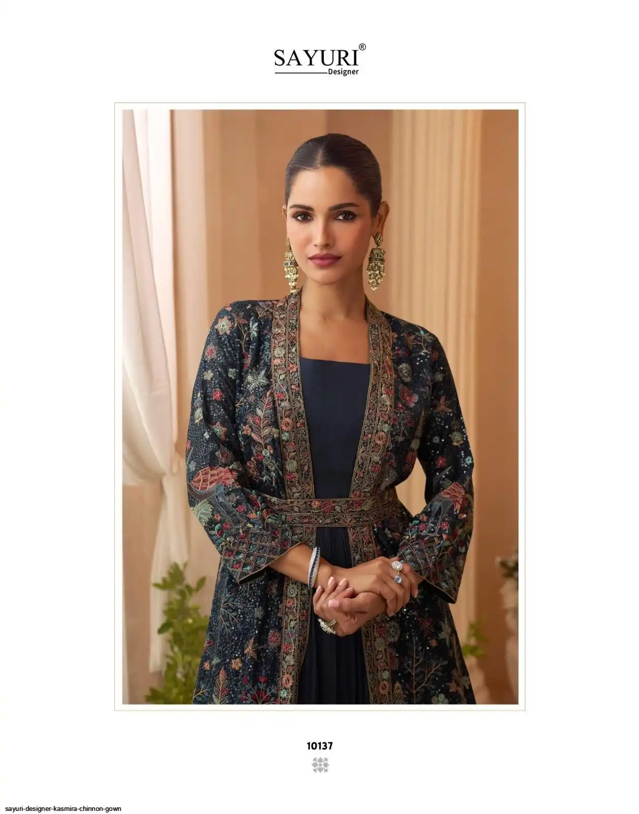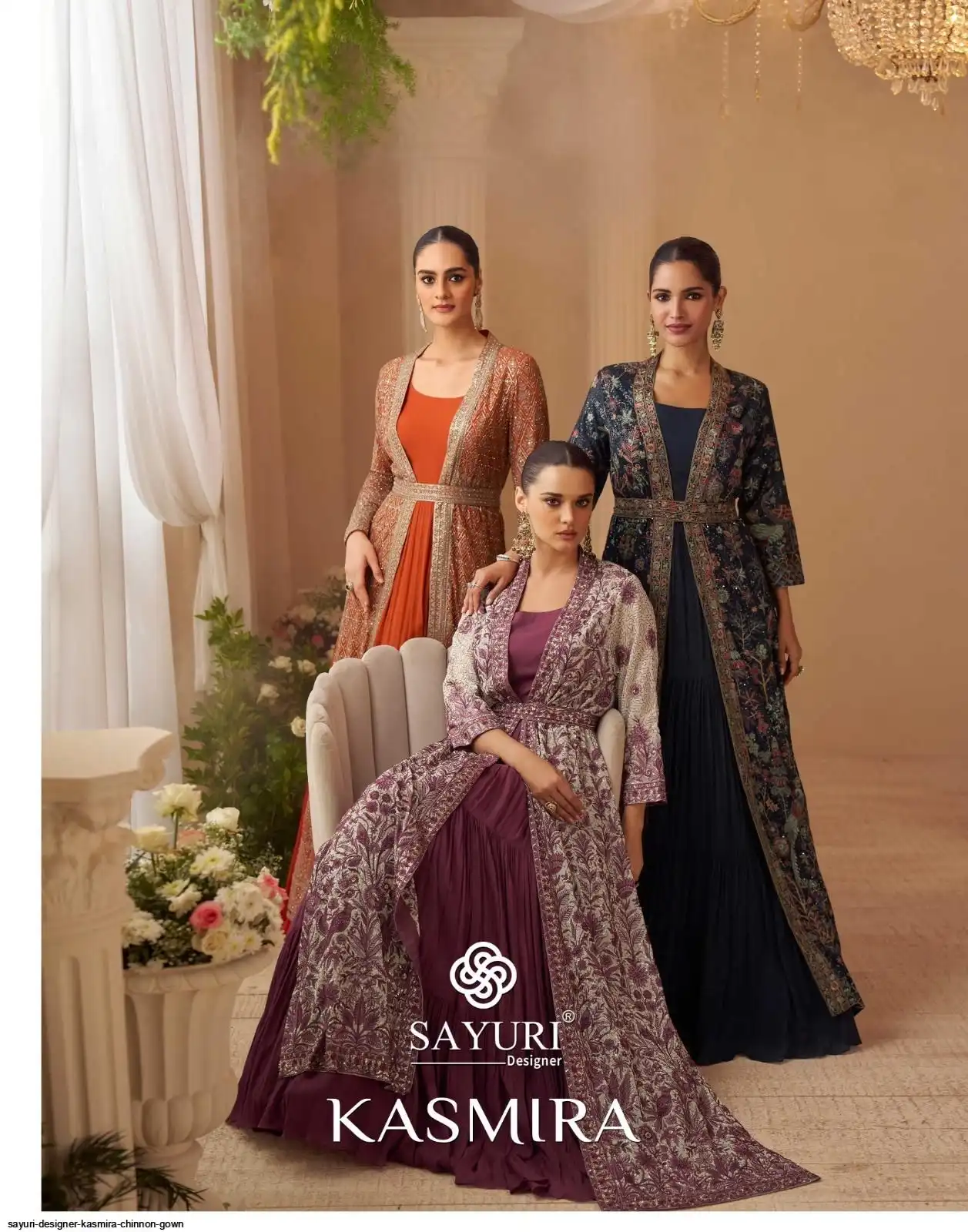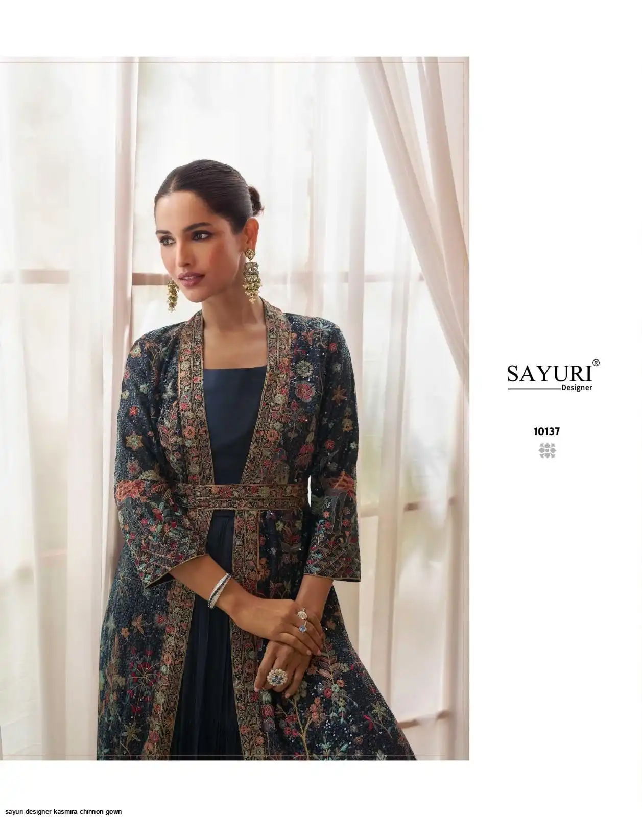 FABRIC - PREMIUM REAL CHİNNON SILK ( TREDY WEDDING LOOK FRONT AND BACK HEAVY EMBROIDERED JACKET WITH BELT AND CHINON SILK GOWN )