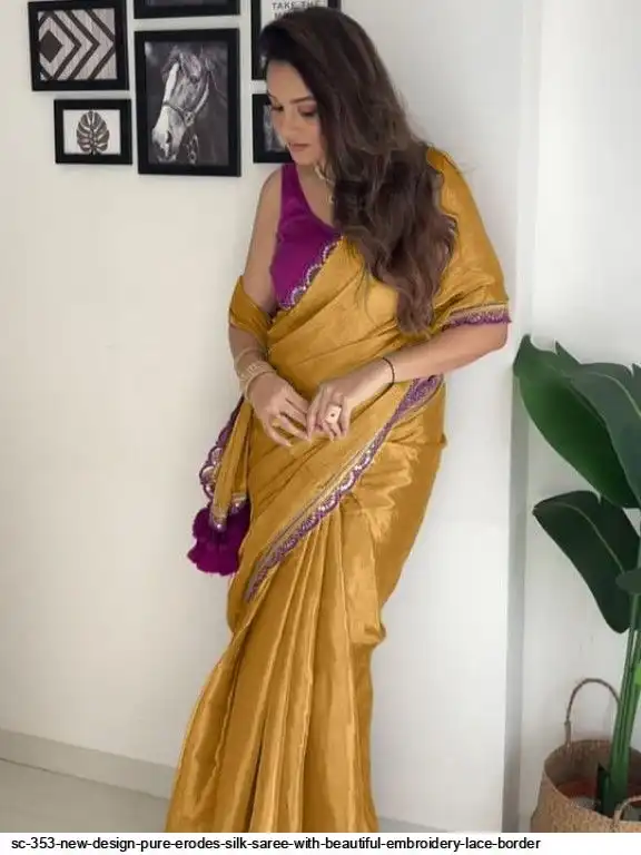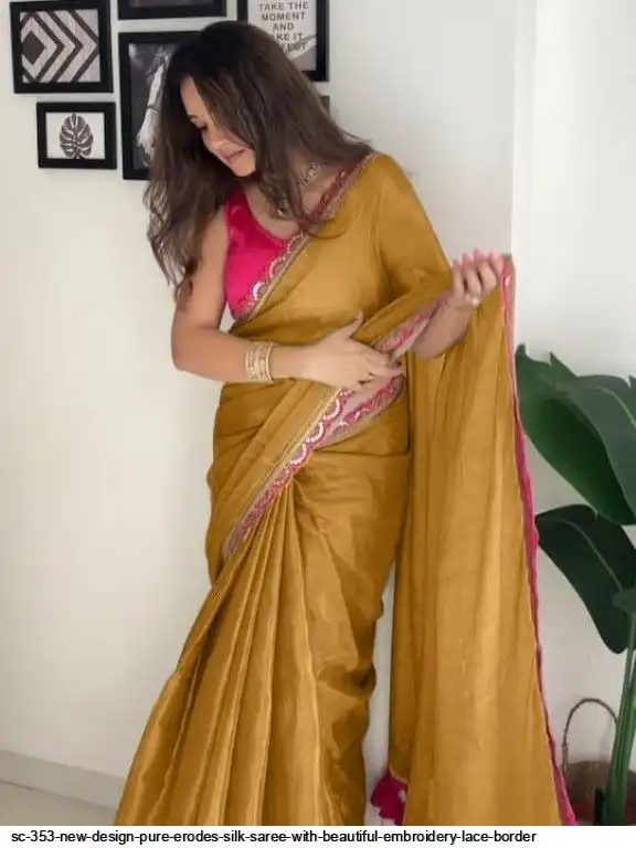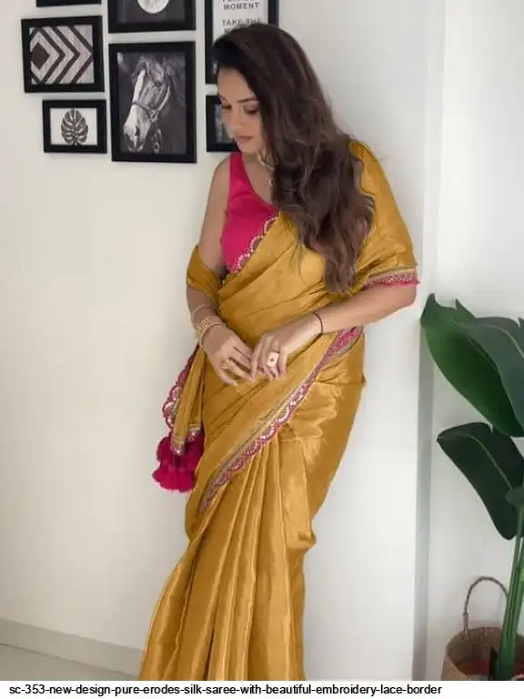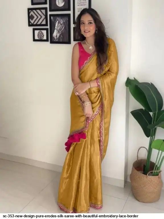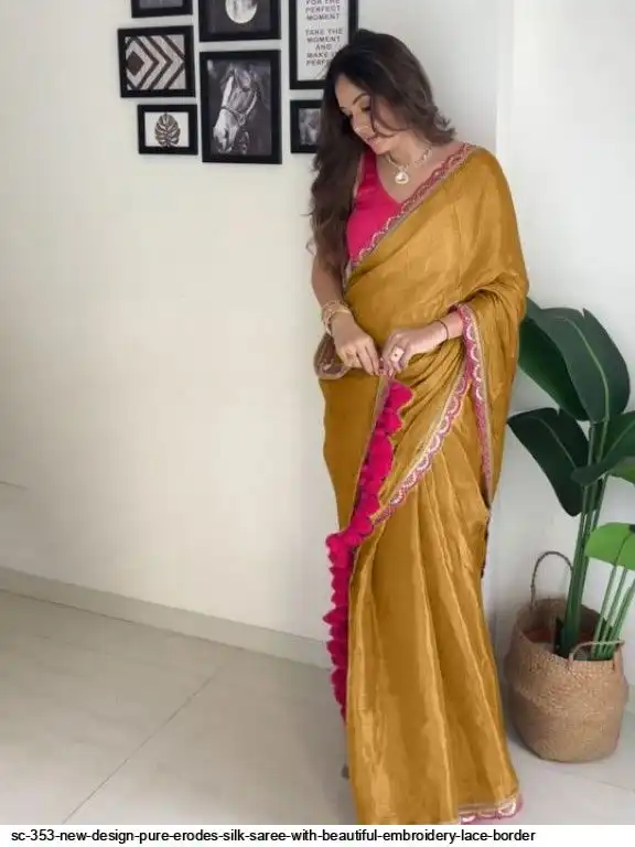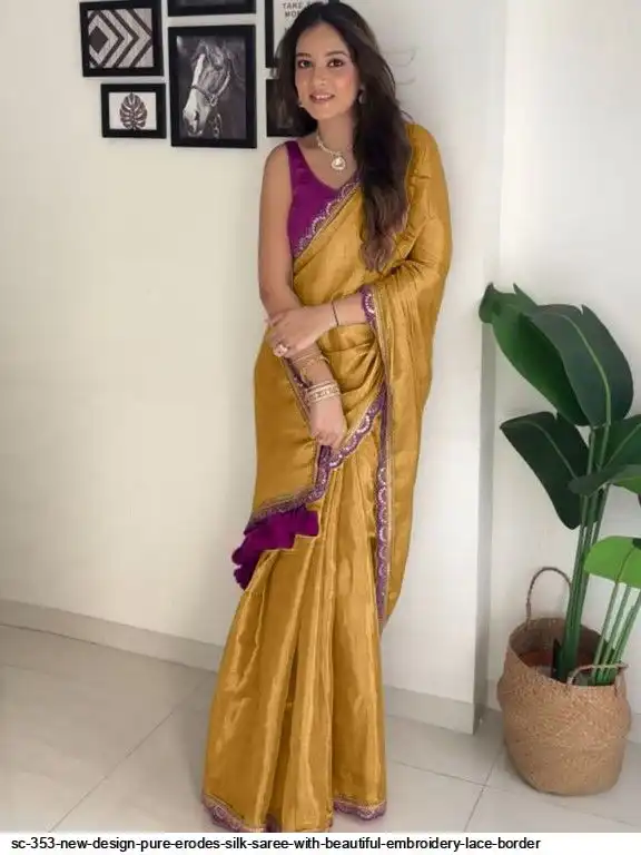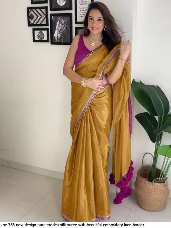 SC 353 NEW DESIGN PURE ERODES SILK SAREE WITH BEAUTIFUL EMBROIDERY LACE BORDER B