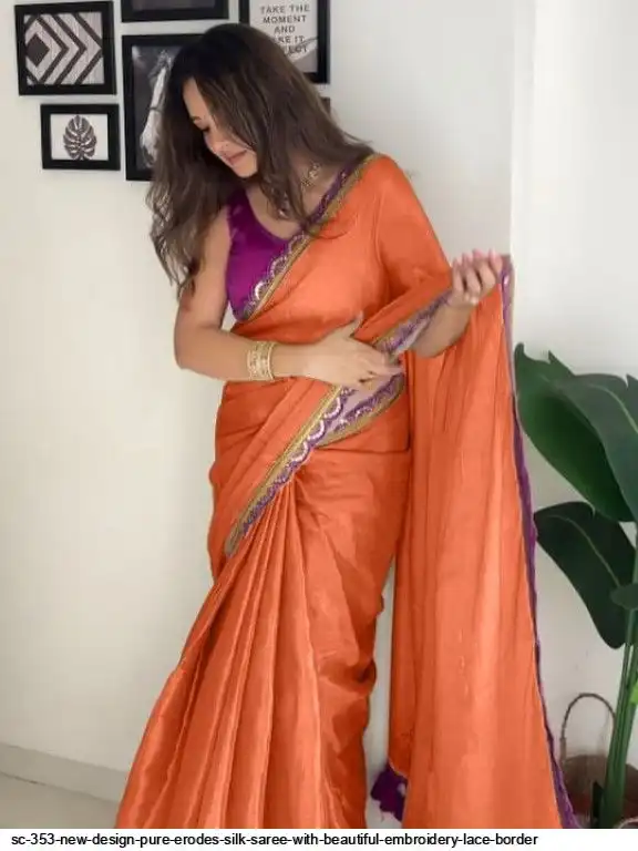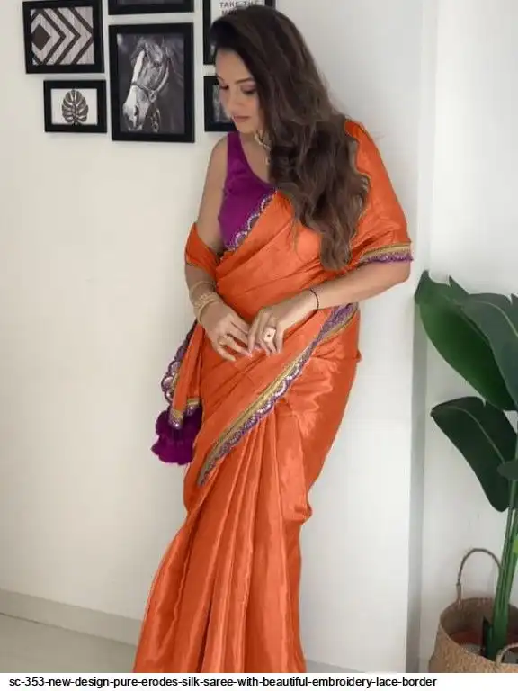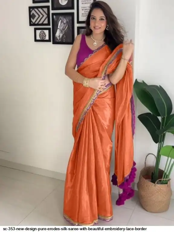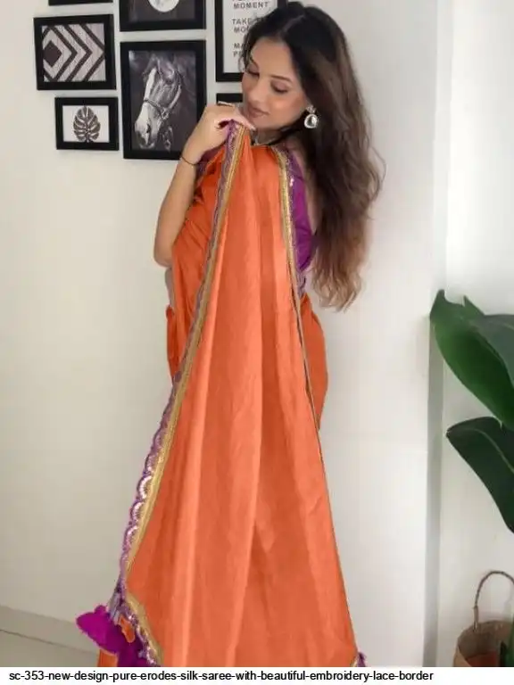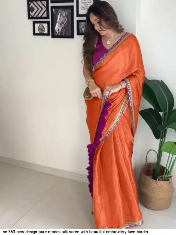 SC 353 NEW DESIGN PURE ERODES SILK SAREE WITH BEAUTIFUL EMBROIDERY LACE BORDER E