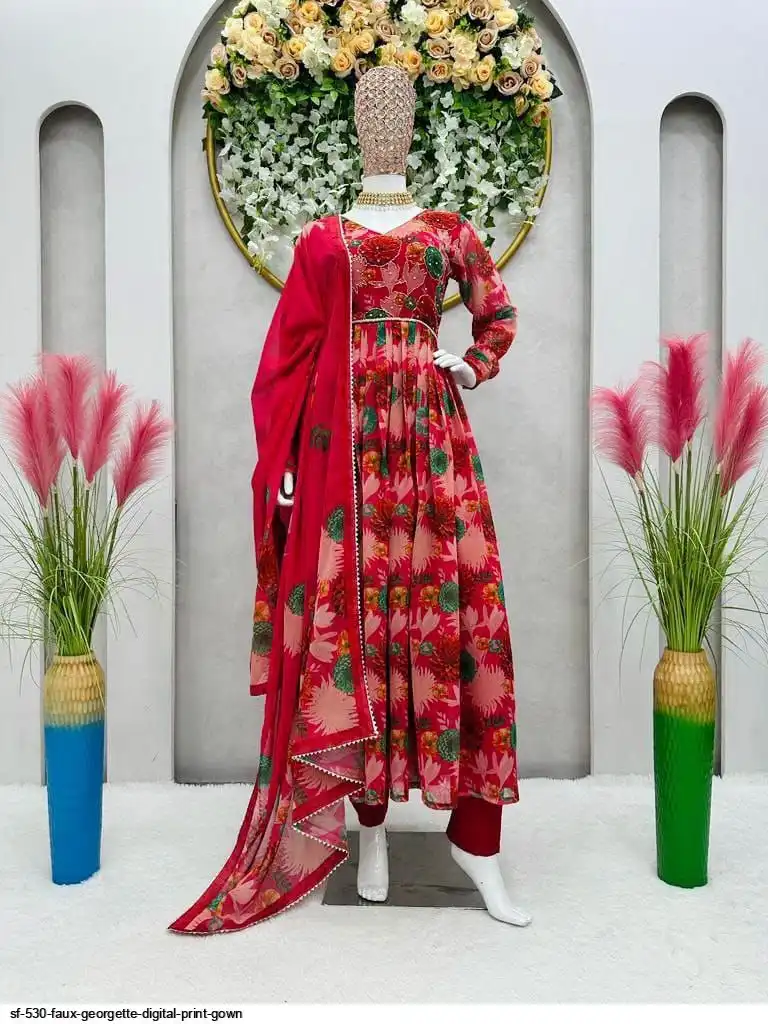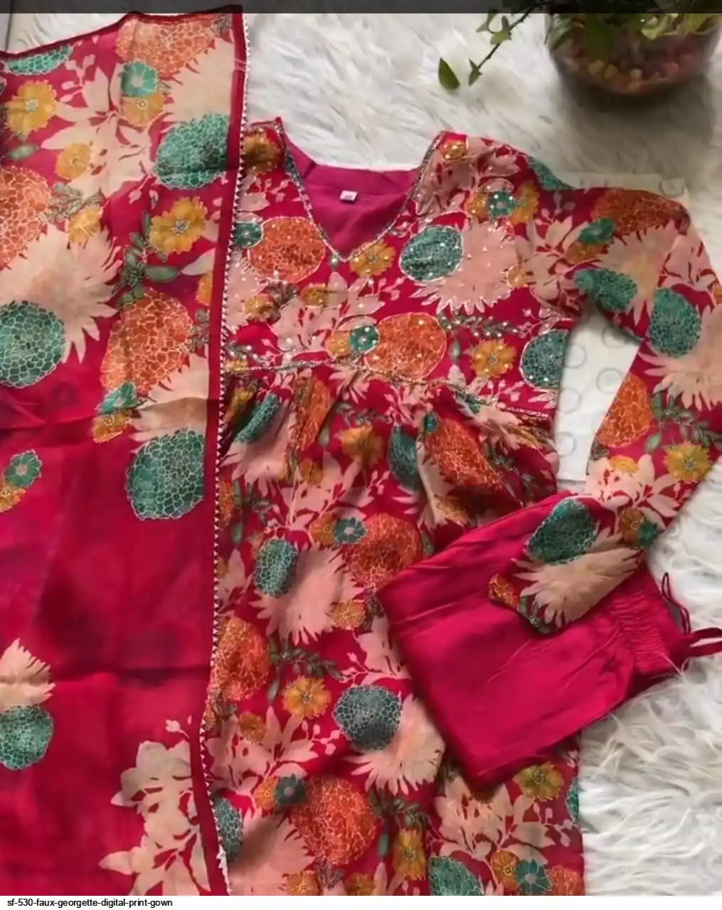 Looking for this same colour beautiful Designer Suit On havy Faux Georgette febric with inner and Digital print & Hand work and Pent On Crep Febric and Dupatta on Faux Georgette febric with Digital Print and 4 side lace.