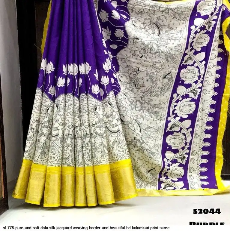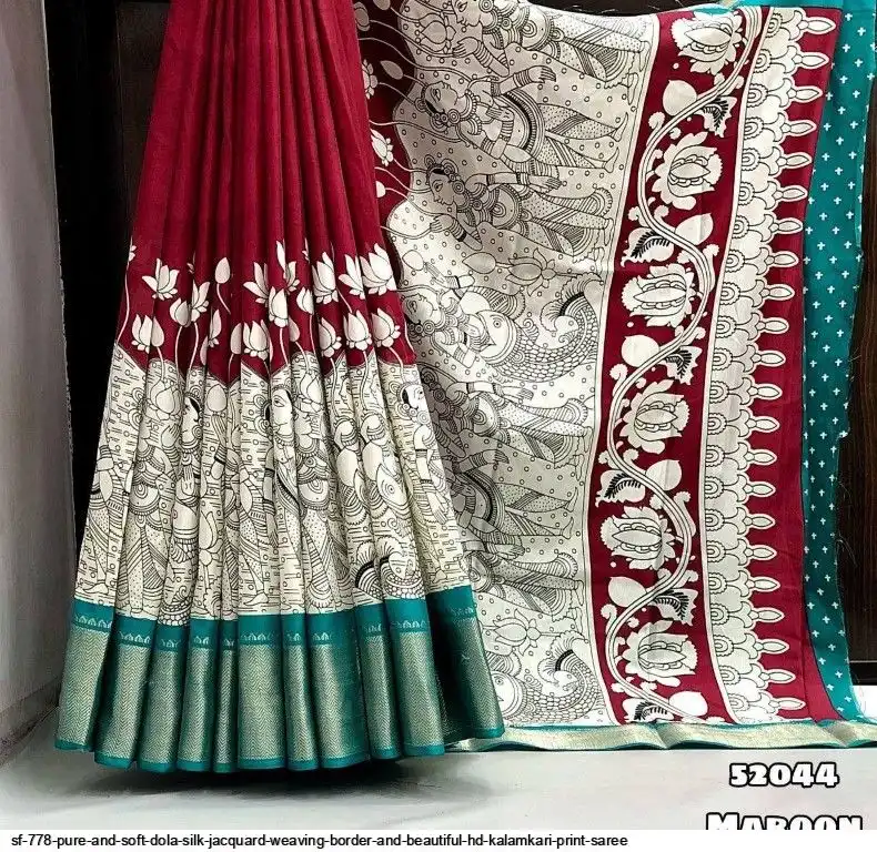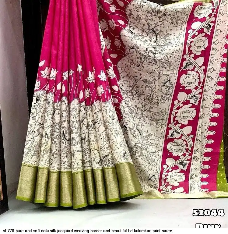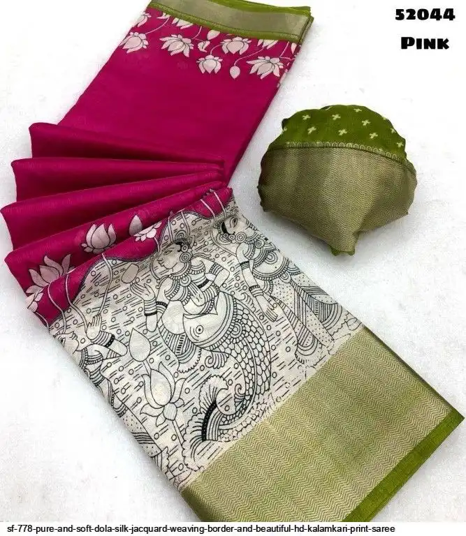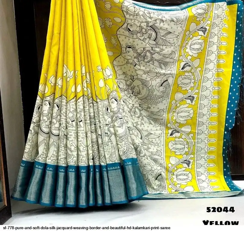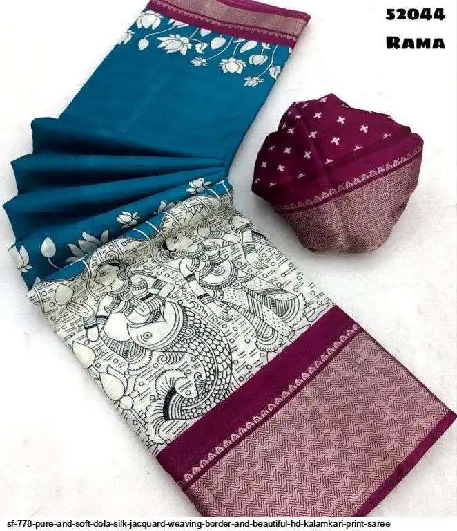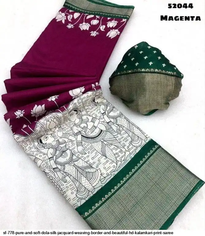 [ heavy jacquard weaving border and beautiful HD KALAMKARI print with attractive WHITE BLACK AND MULTI colour combination ]