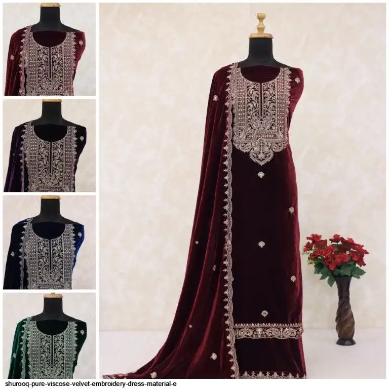 Pure viscose velvet embroidery collection with velvet fancy dupatta