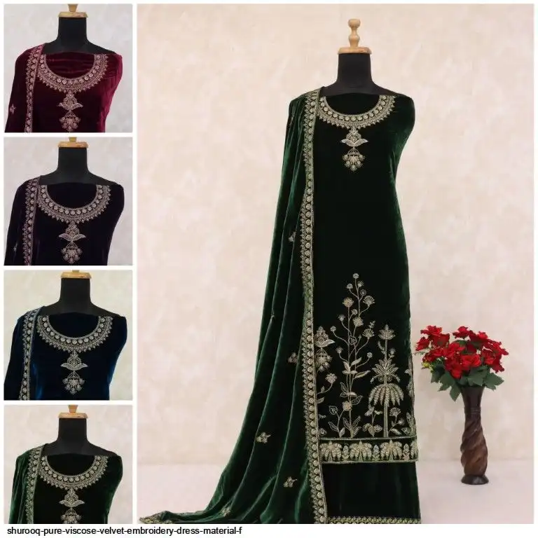 SHUROOQ PURE VISCOSE VELVET EMBROIDERY DRESS MATERIAL F