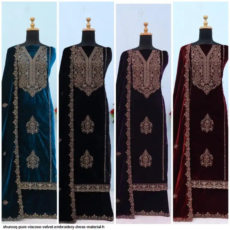 SHUROOQ PURE VISCOSE VELVET EMBROIDERY DRESS MATERIAL H