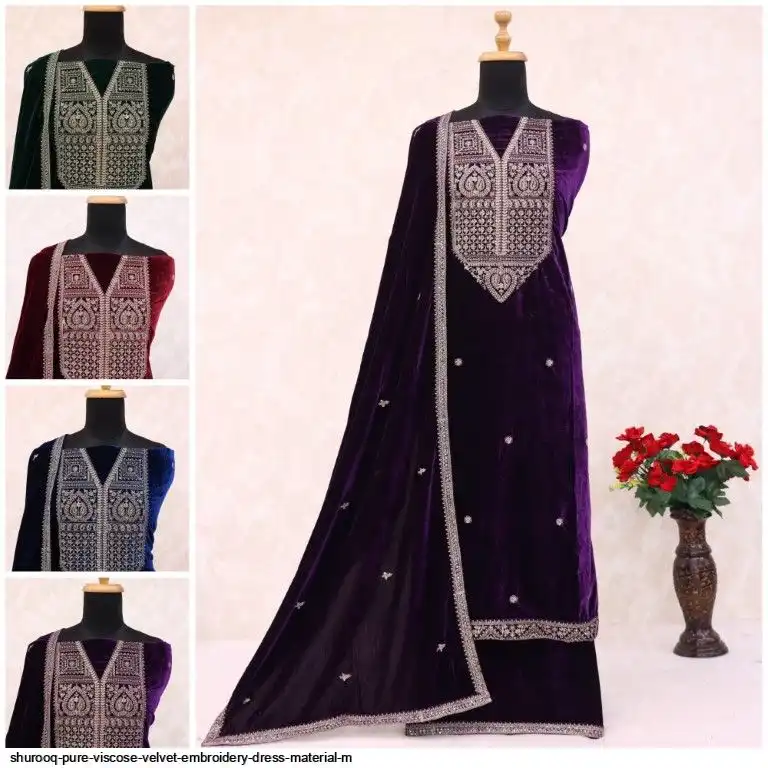 SHUROOQ PURE VISCOSE VELVET EMBROIDERY DRESS MATERIAL M