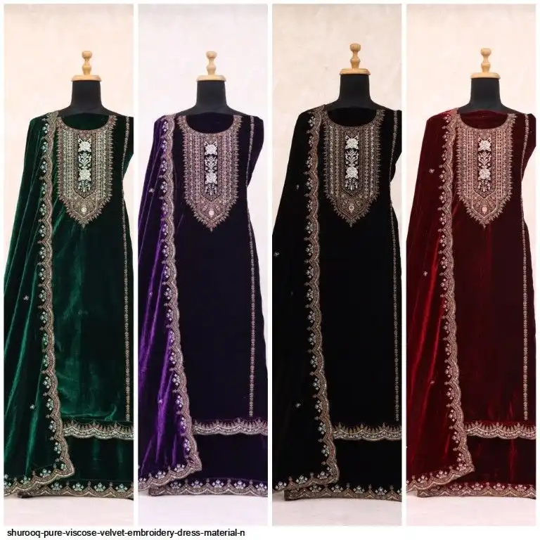 Pure viscose velvet embroidery collection with velvet fancy dupatta