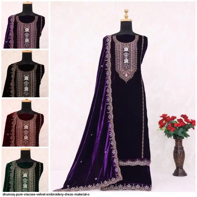 Pure viscose velvet embroidery collection with velvet fancy dupatta