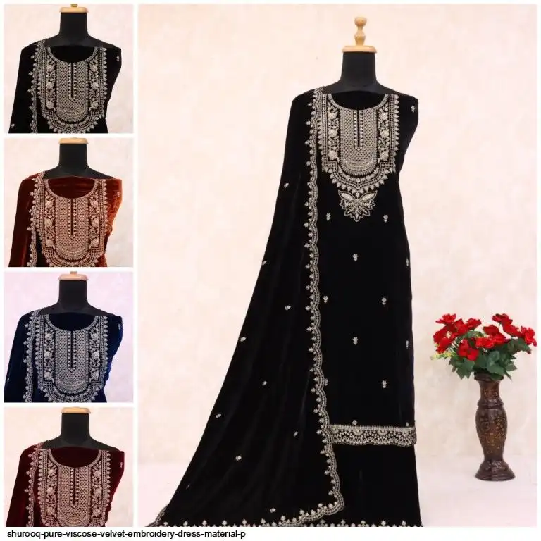 SHUROOQ PURE VISCOSE VELVET EMBROIDERY DRESS MATERIAL P