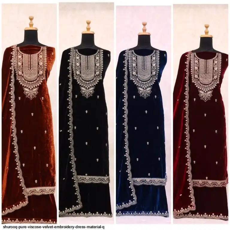 SHUROOQ PURE VISCOSE VELVET EMBROIDERY DRESS MATERIAL Q