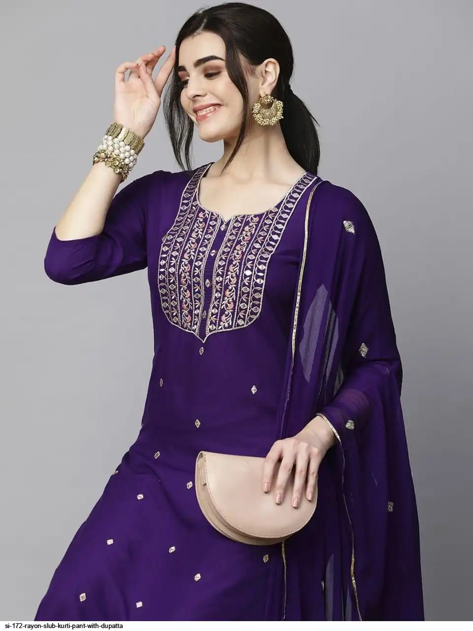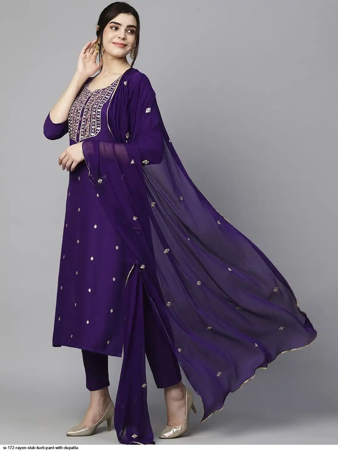 SI 172 RAYON SLUB KURTI PANT WITH DUPATTA C