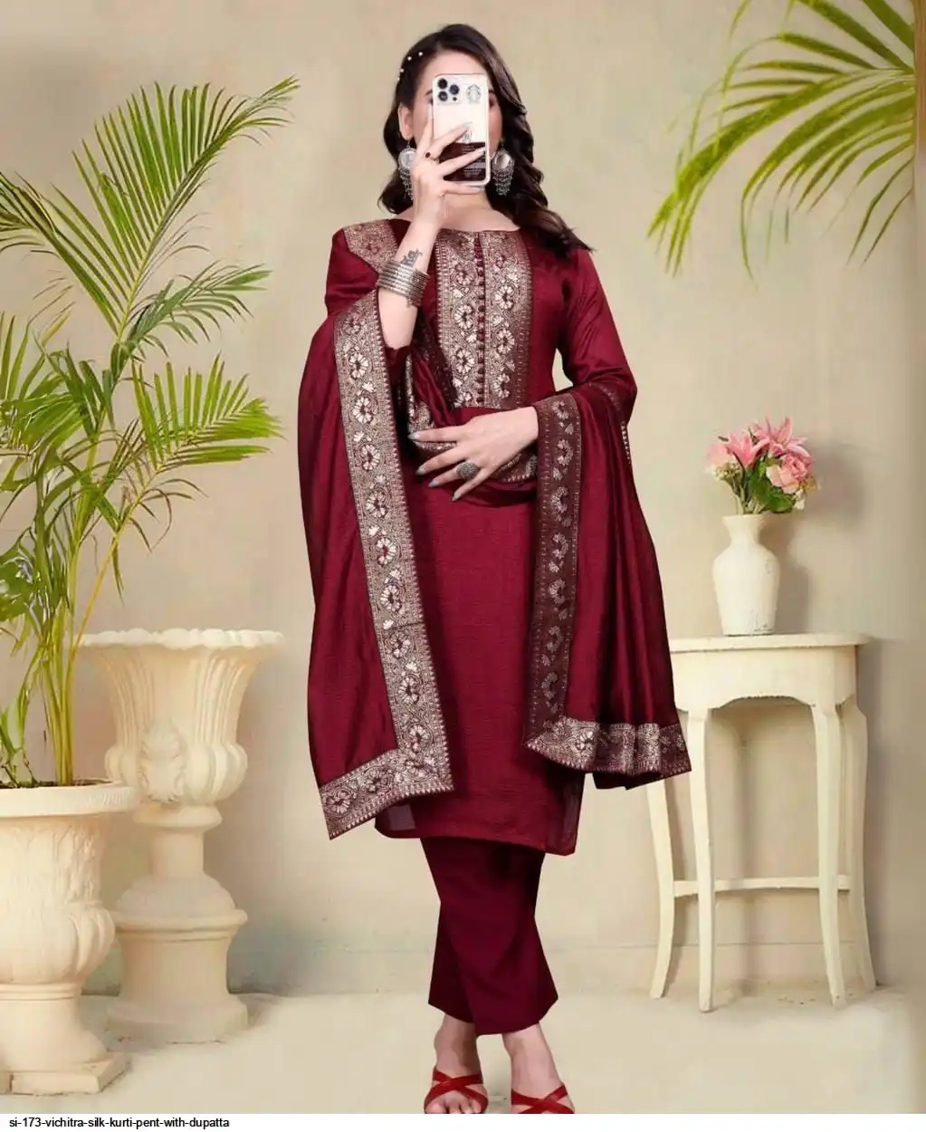 SI 173 VICHITRA SILK KURTI PENT WITH DUPATTA B