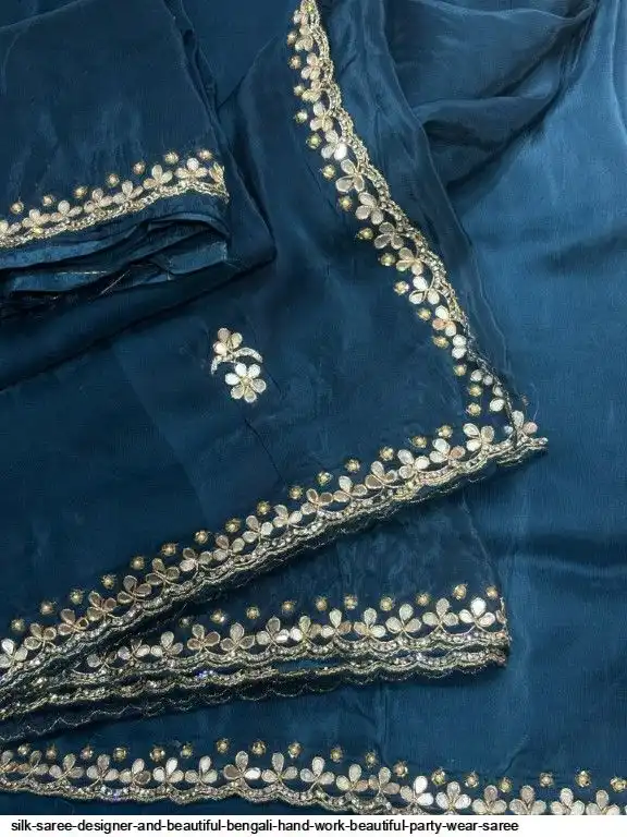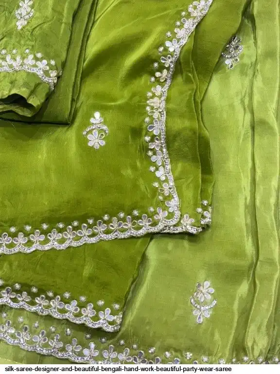 pure h.o silk saree designer  and beautiful Bengali hand work butta and zeera too hundred daing beautiful party wear saree