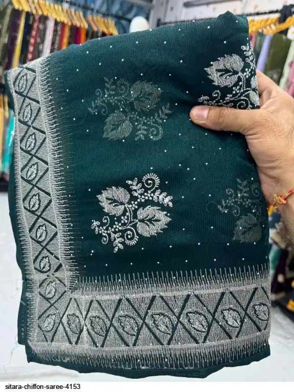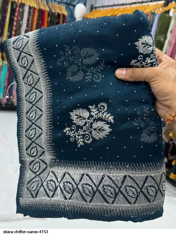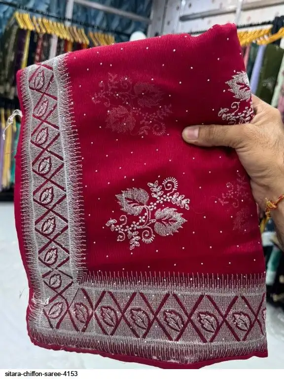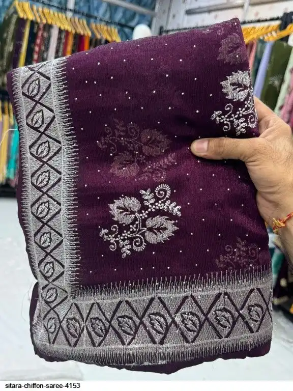 Work : Full Heavy Silver Zari Embroidery Work With Stone Work