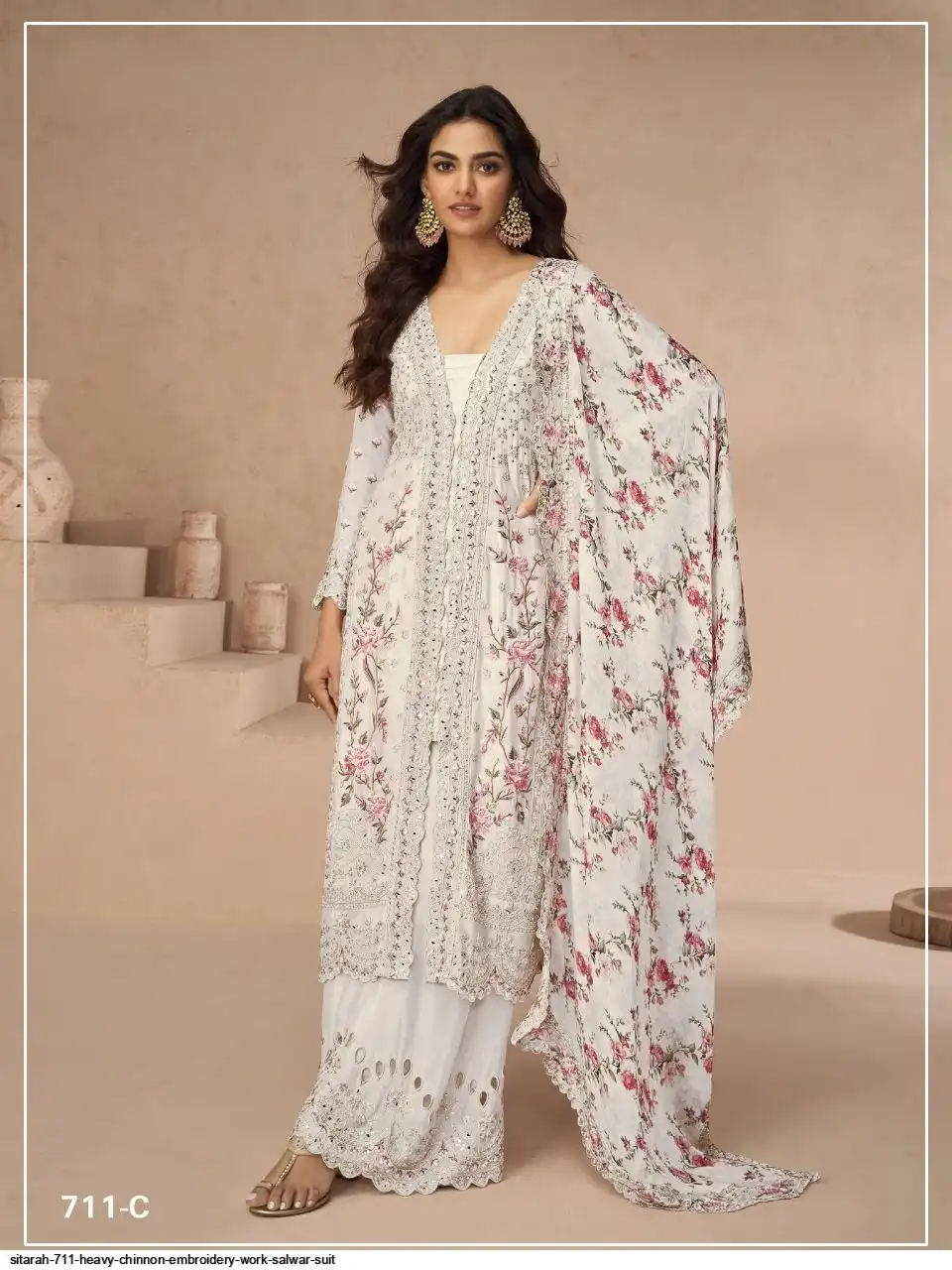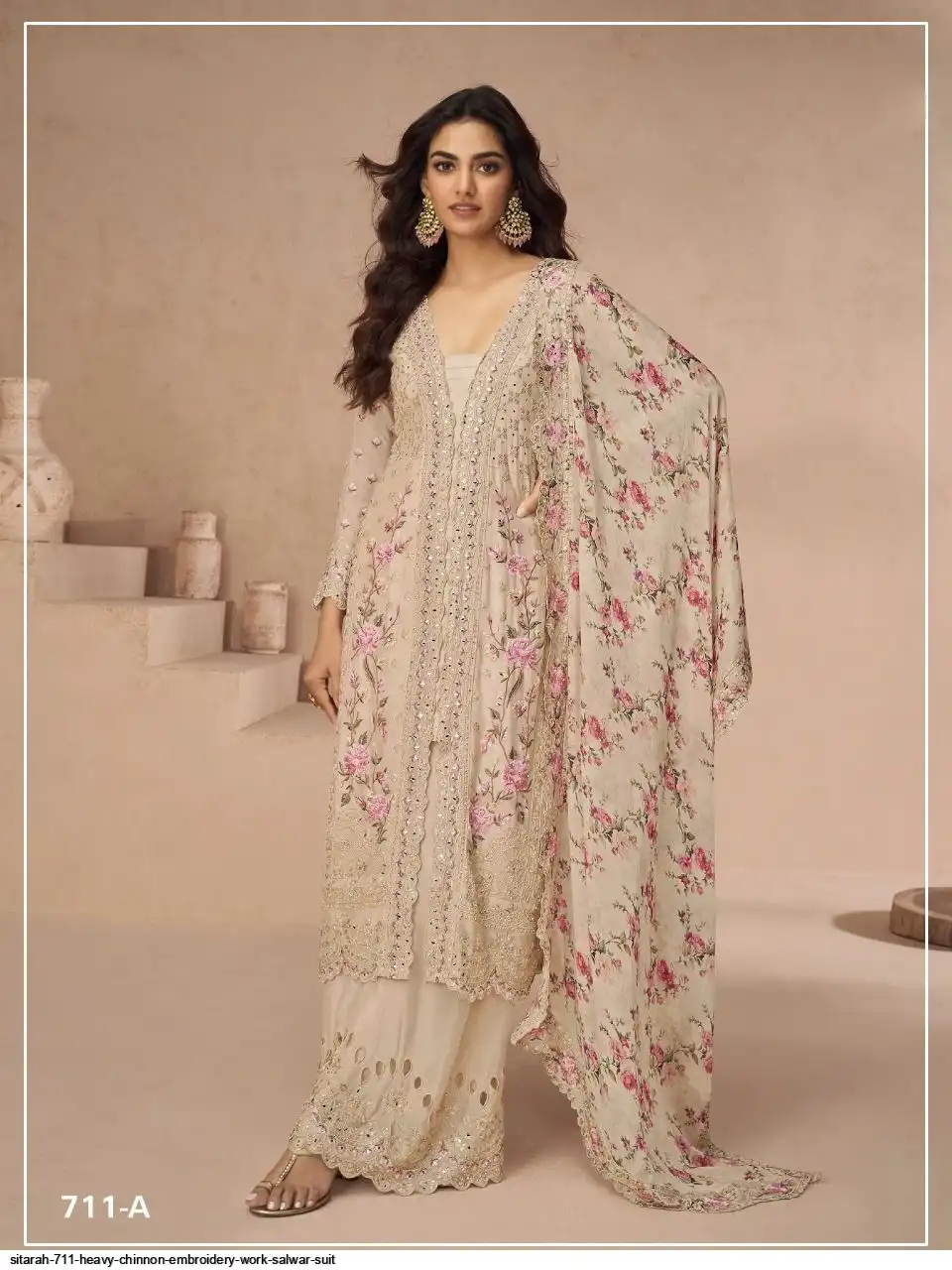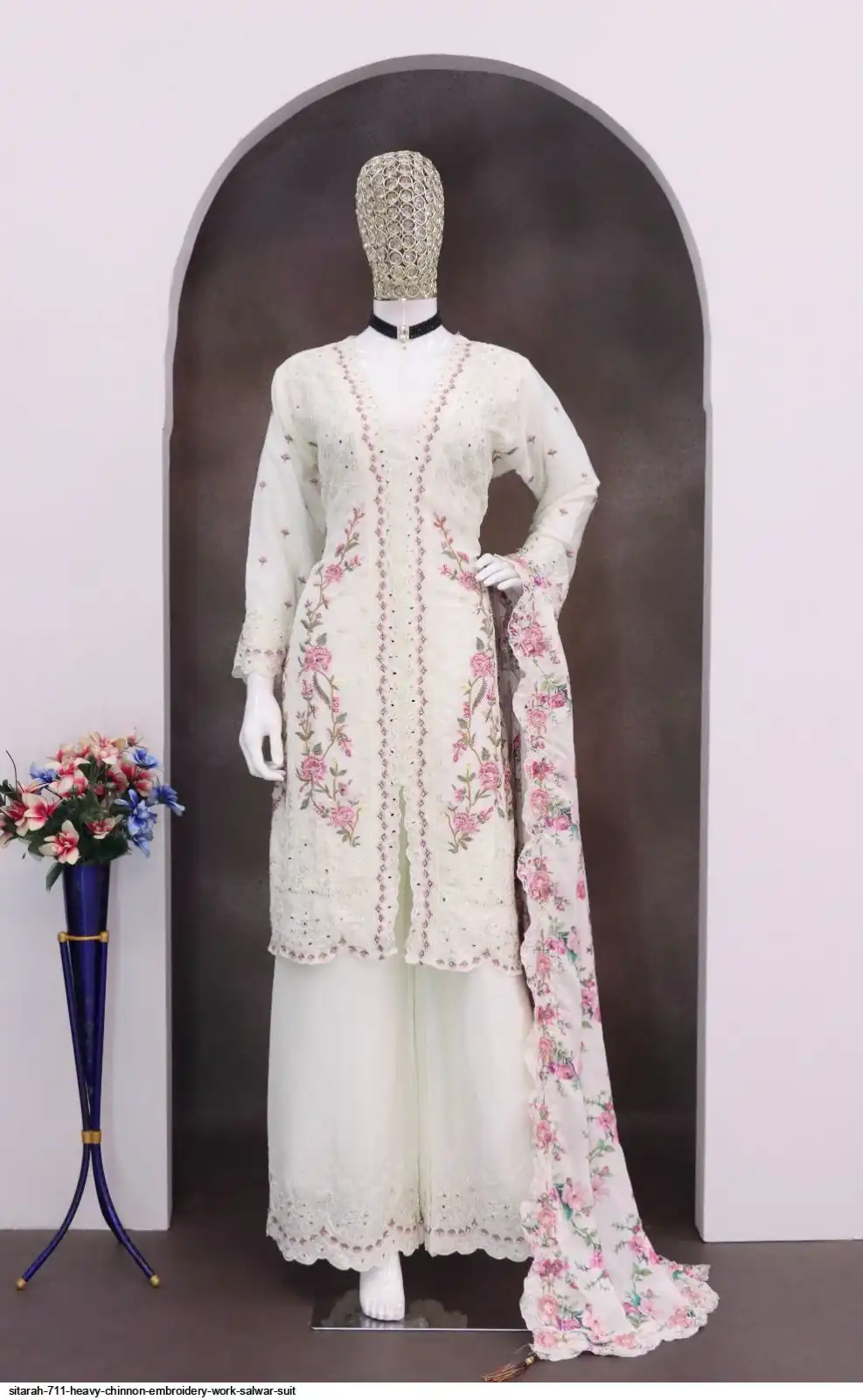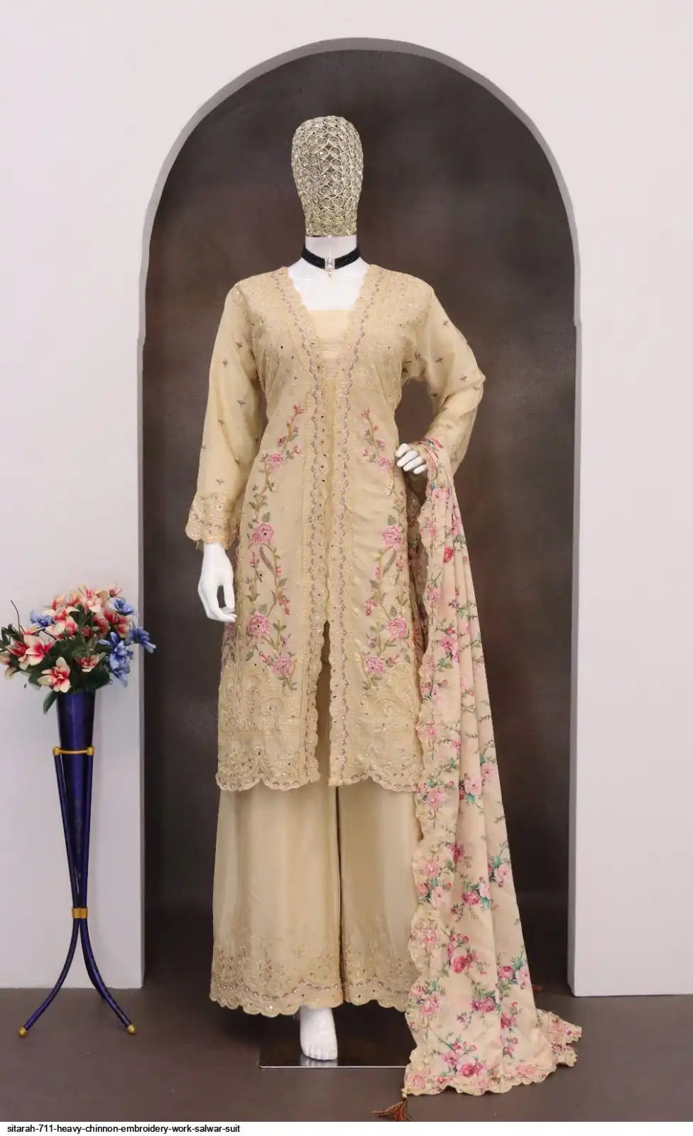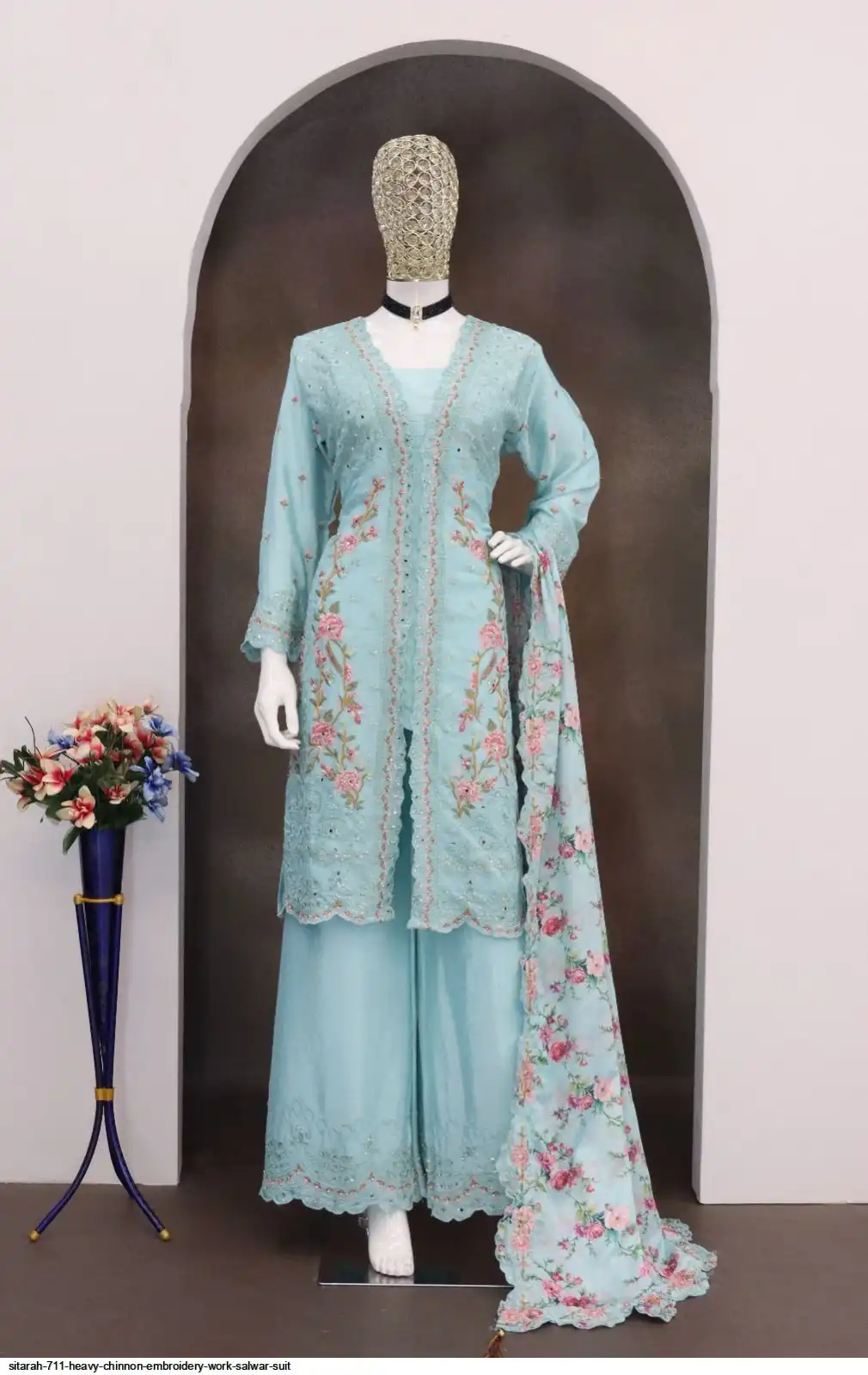 WORK :- Multi Thread With Sequence Embroidery Stitch + Mirror Diamond Work