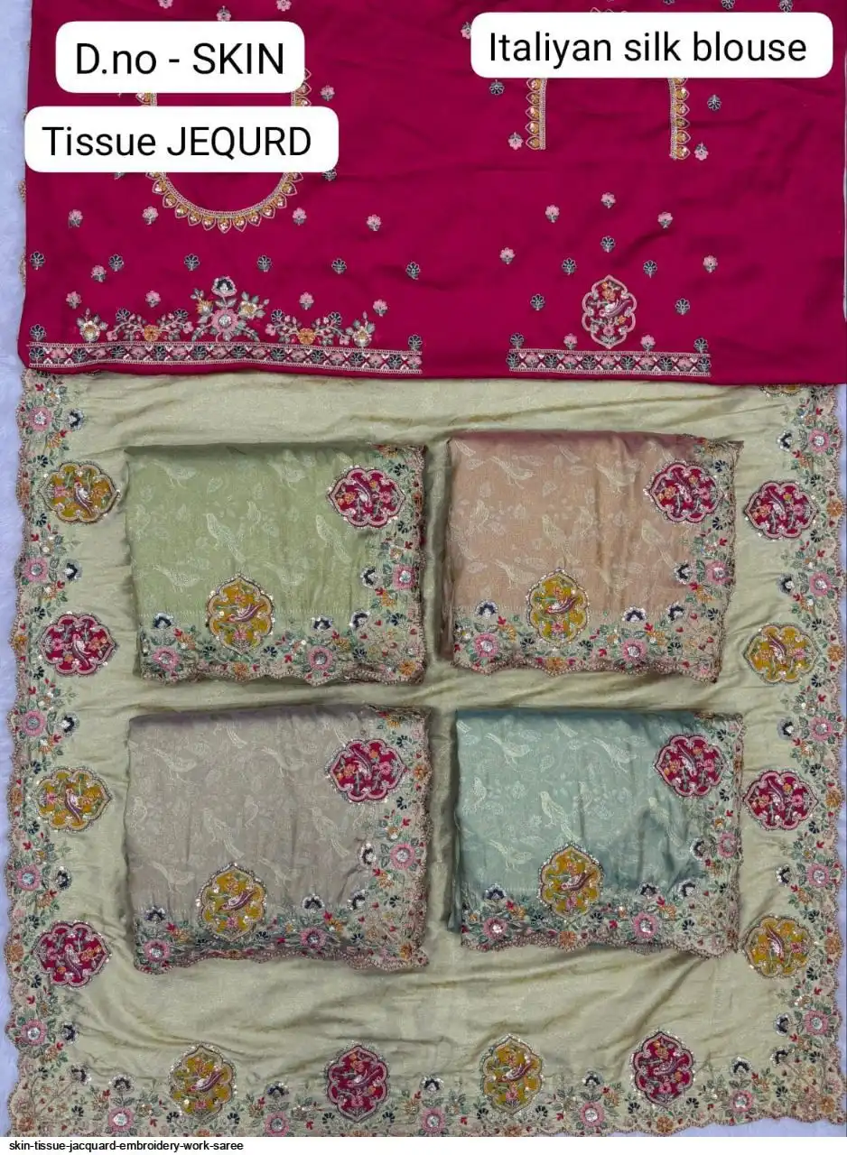 Work :- Full Heavy Multicoloured Thread & Sequins Embroidery Work ,Zari Work Coding Dori Work In all over Borders