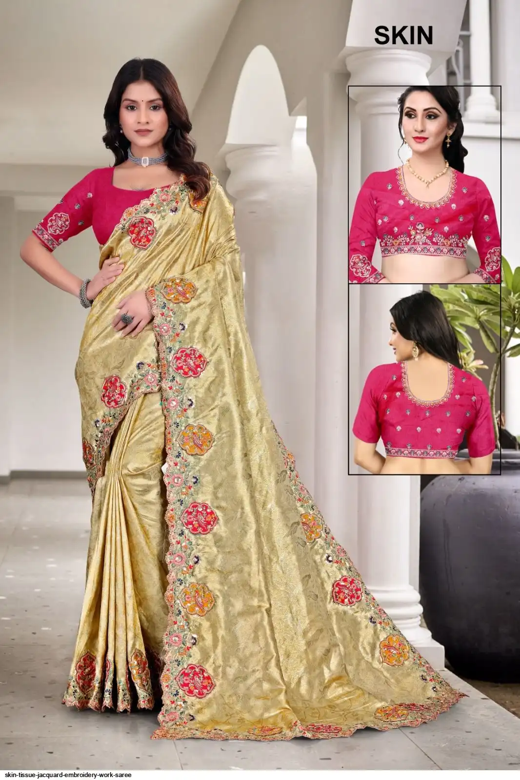 Blouse :-Contrast Italiyan Silk With Heavy Work.