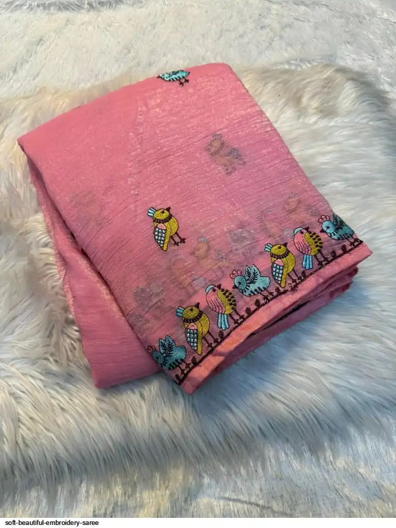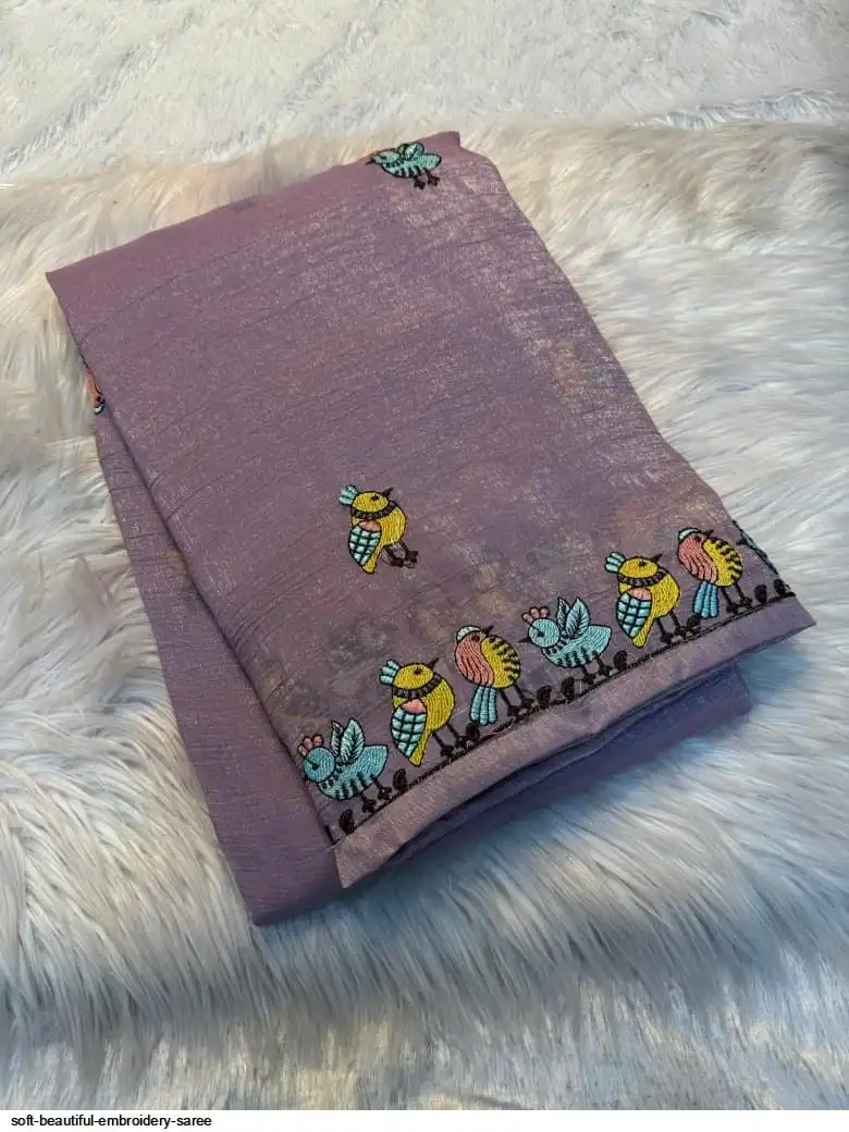 Soft febric saree with beautiful white therd embroidery work c pallu with embroidery work blouse
