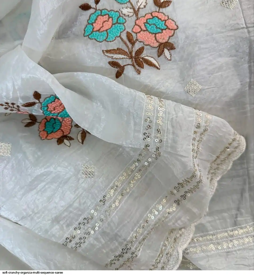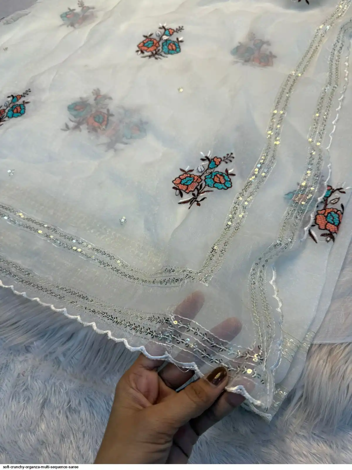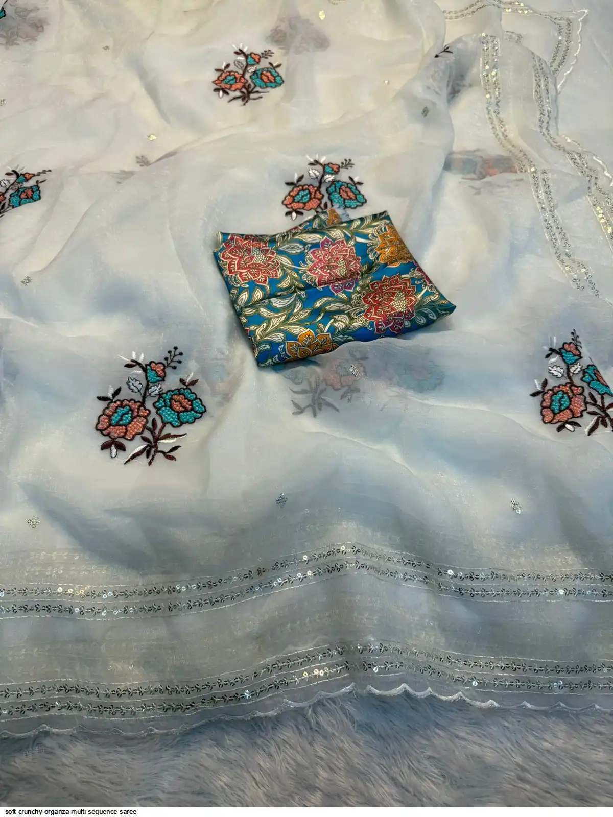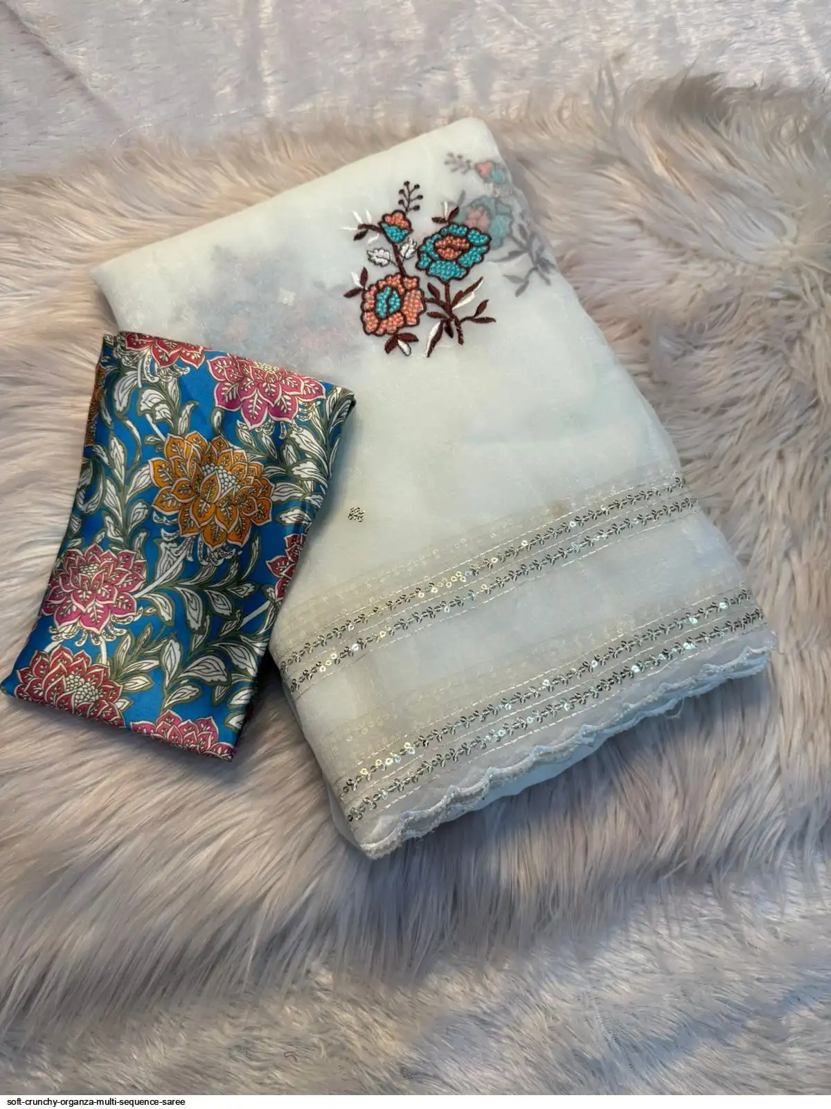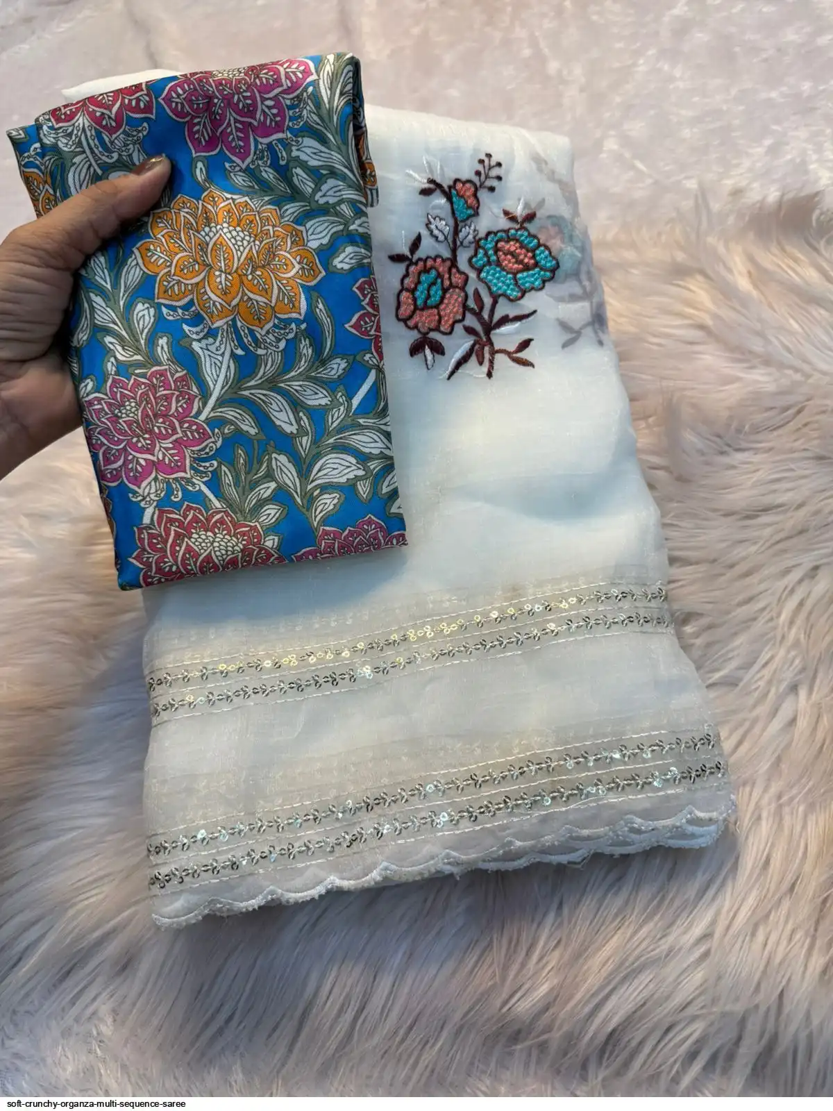 Soft crunchy organza Multi Sequence Emrodairy Full Worked Saree With digital Blouse