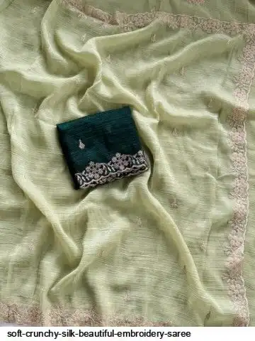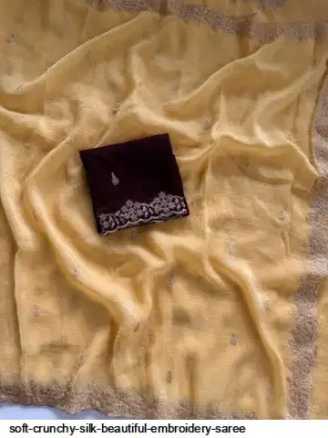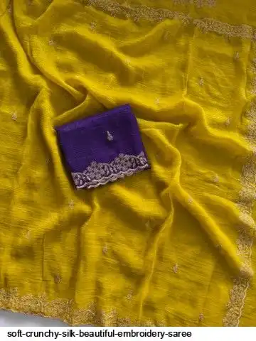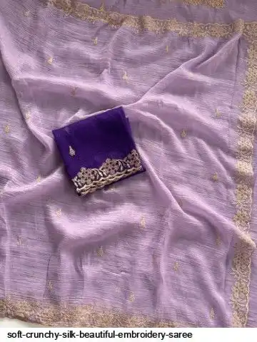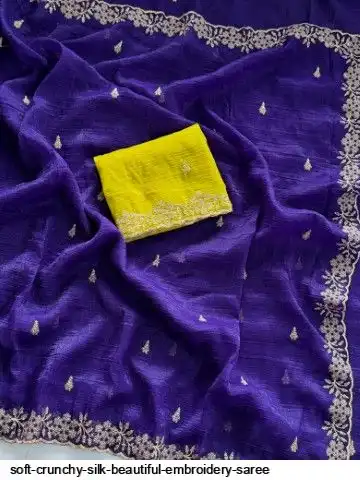 Soft crunchy silk saree with beautiful heavy embroidery work and running blouse with work