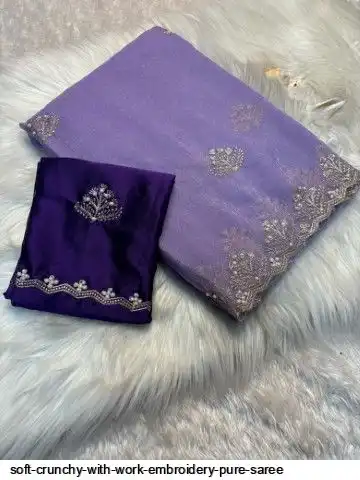 Soft crunchy saree with embroidery work with ston work saree wit cut work finishing