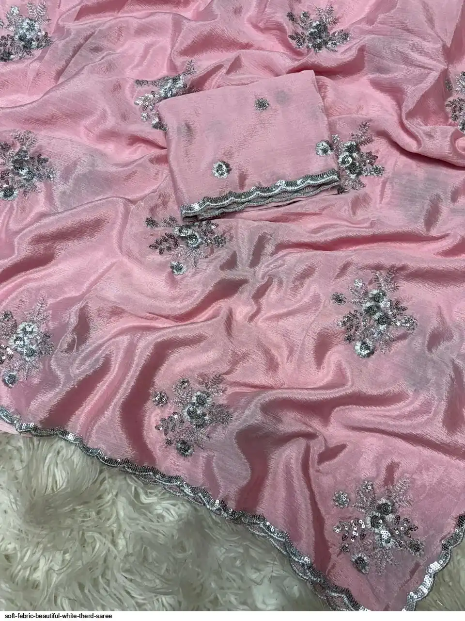 Soft febric saree with beautiful white therd embroidery work c pallu with embroidery work blouse