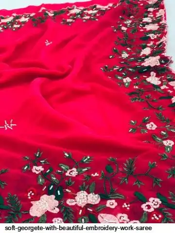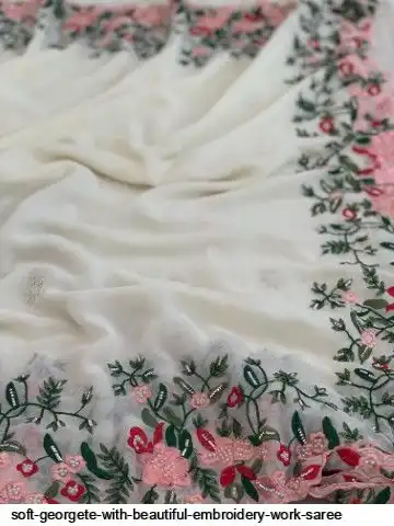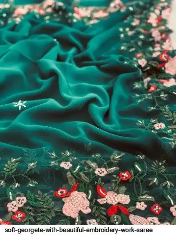 Soft georgete saree with beautiful embroidery work all over saree and plain silk matching blouse