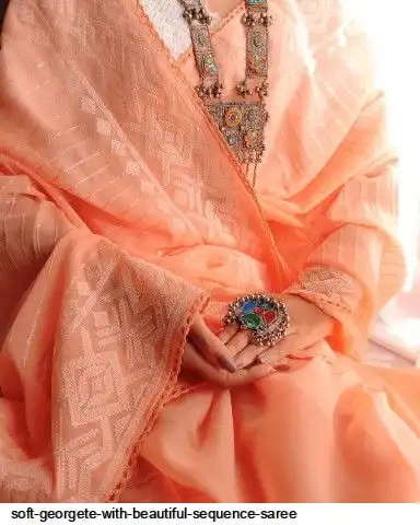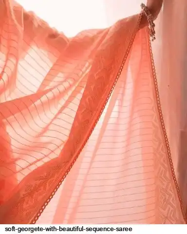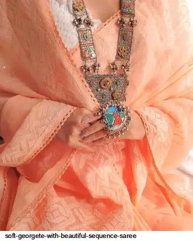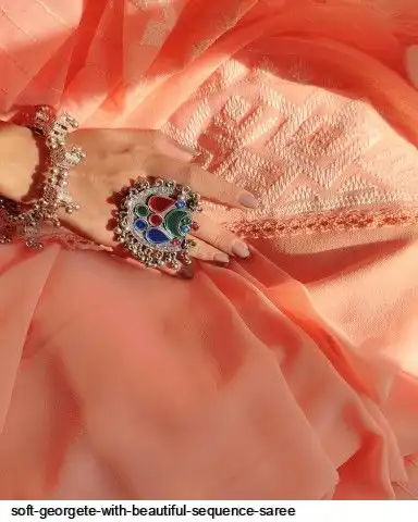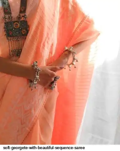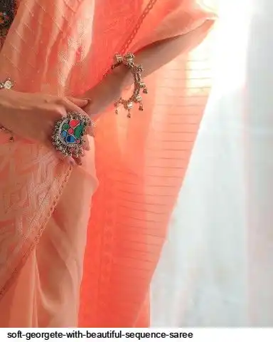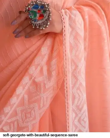 Soft georgete saree with beautiful sequence cover thread work and plain silk blouse