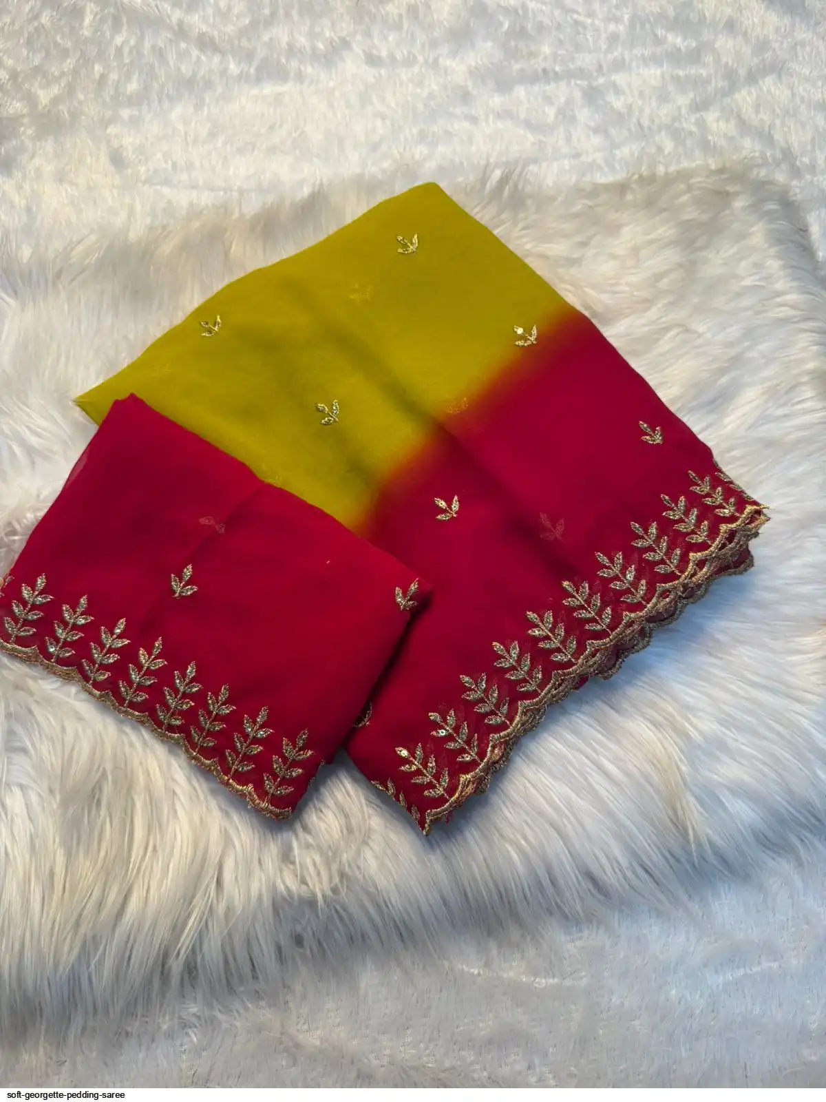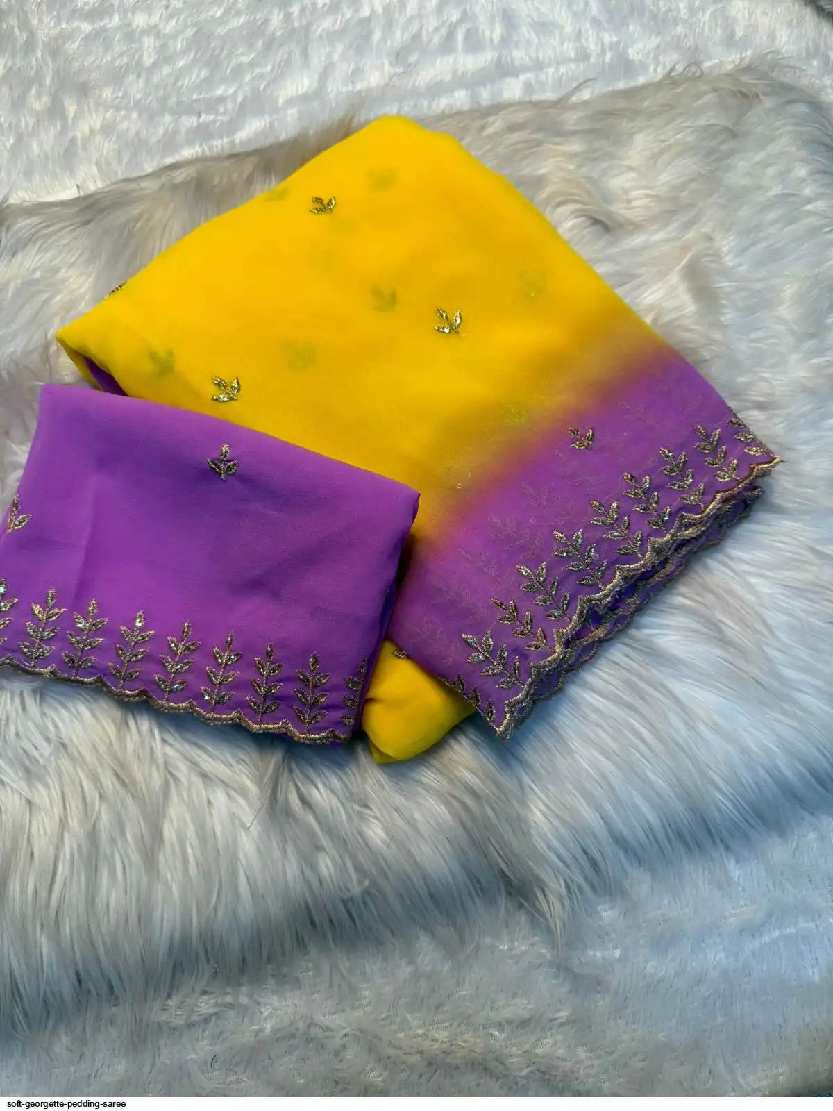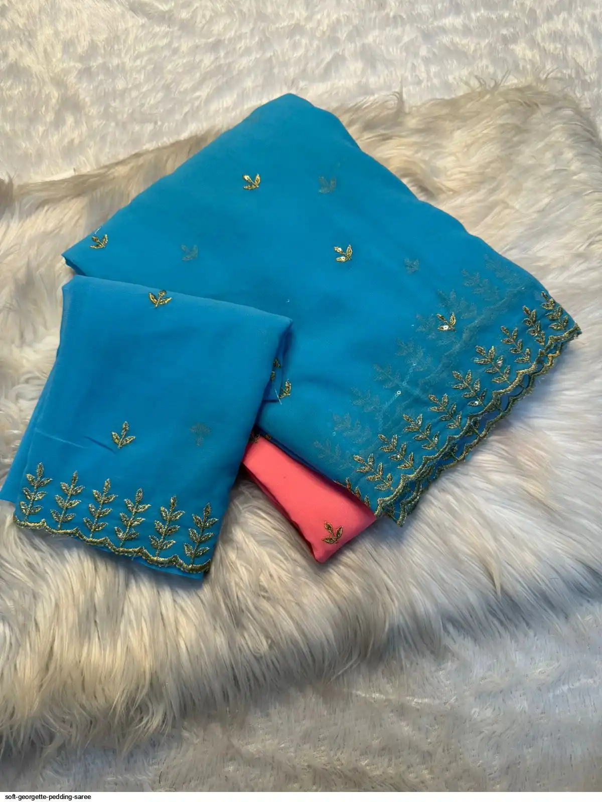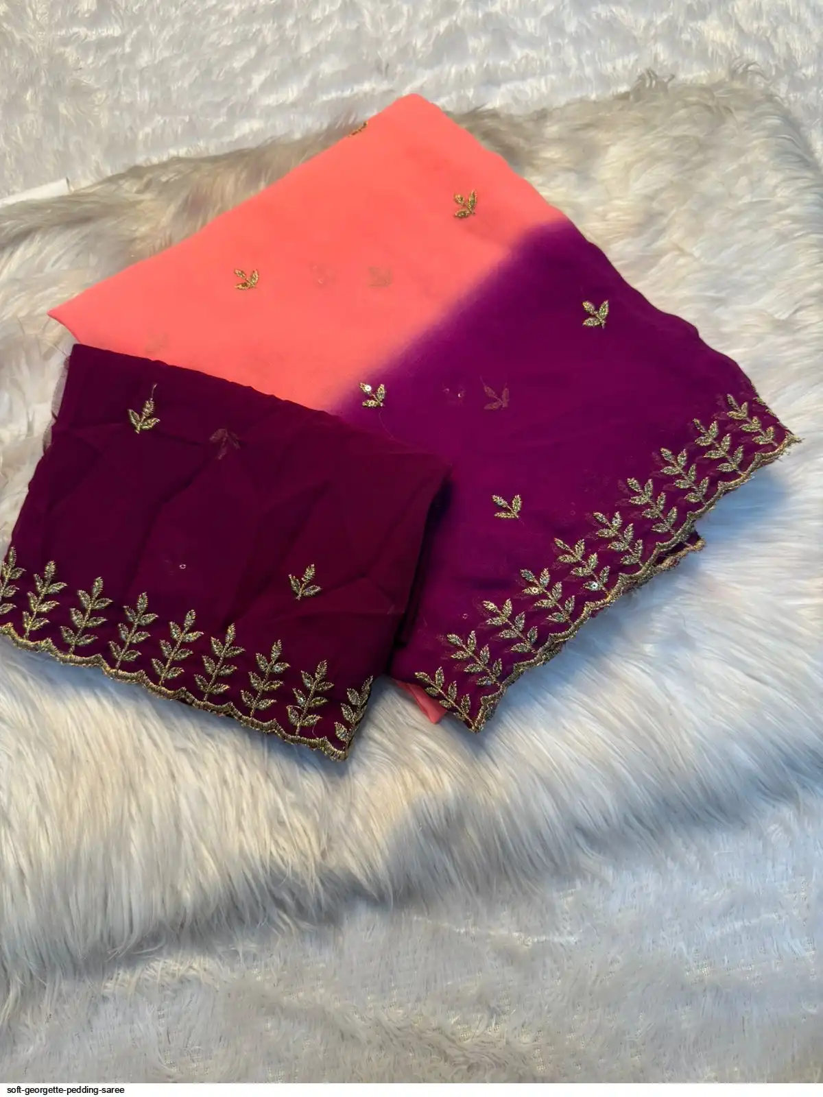 Soft Georgette pedding saree with embroidery work with 2D concept with running blouse
