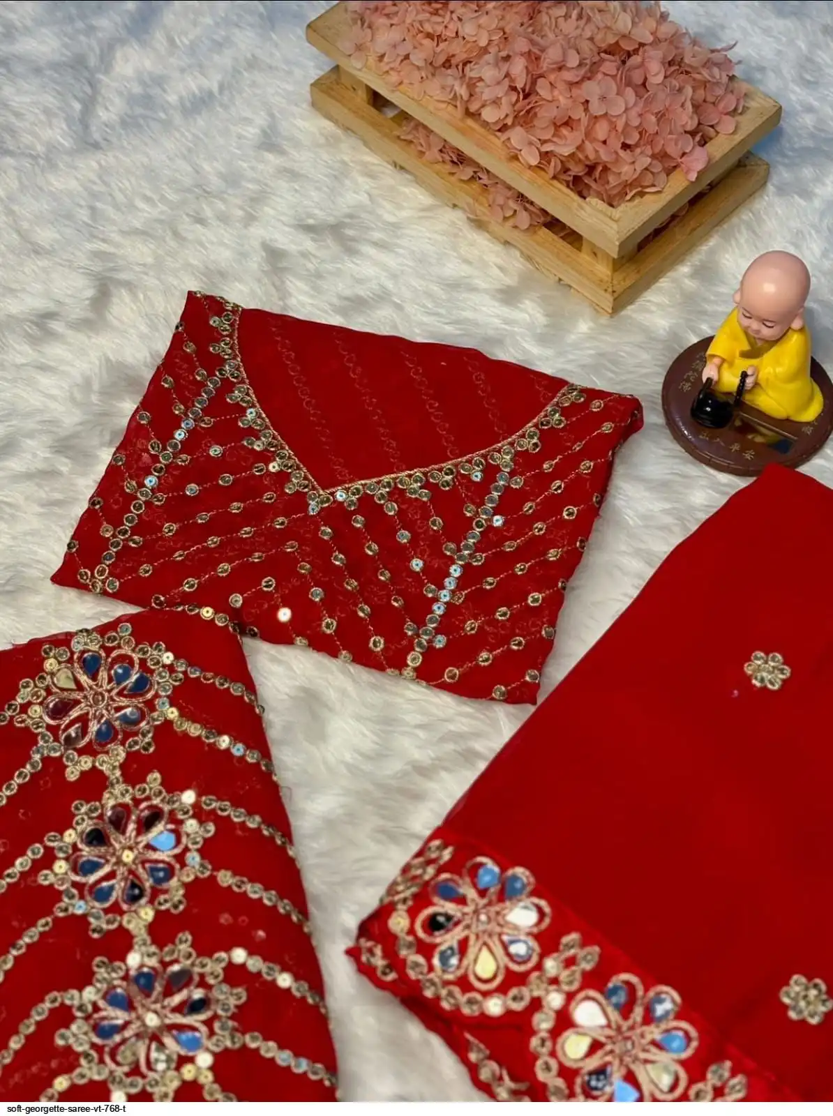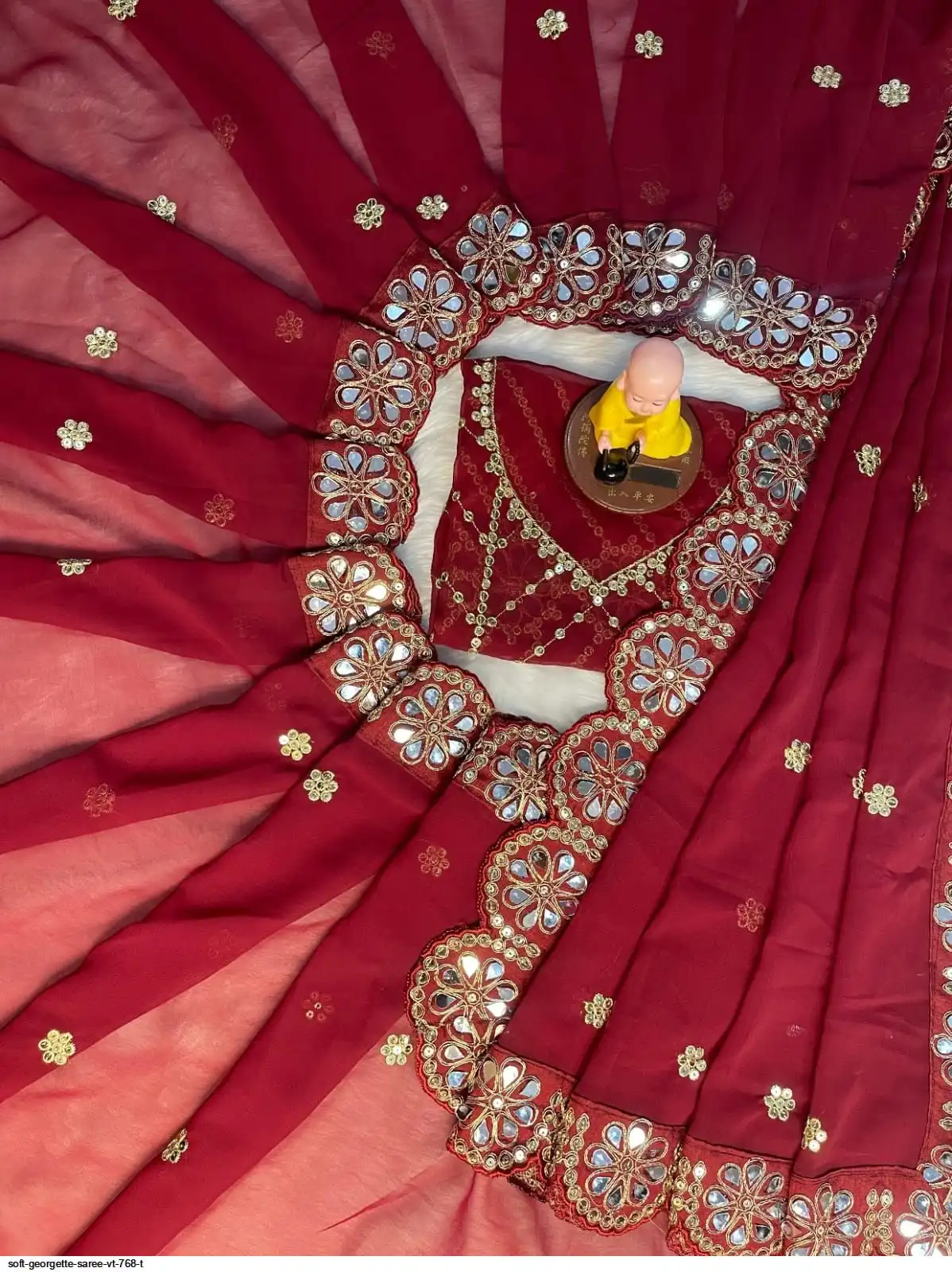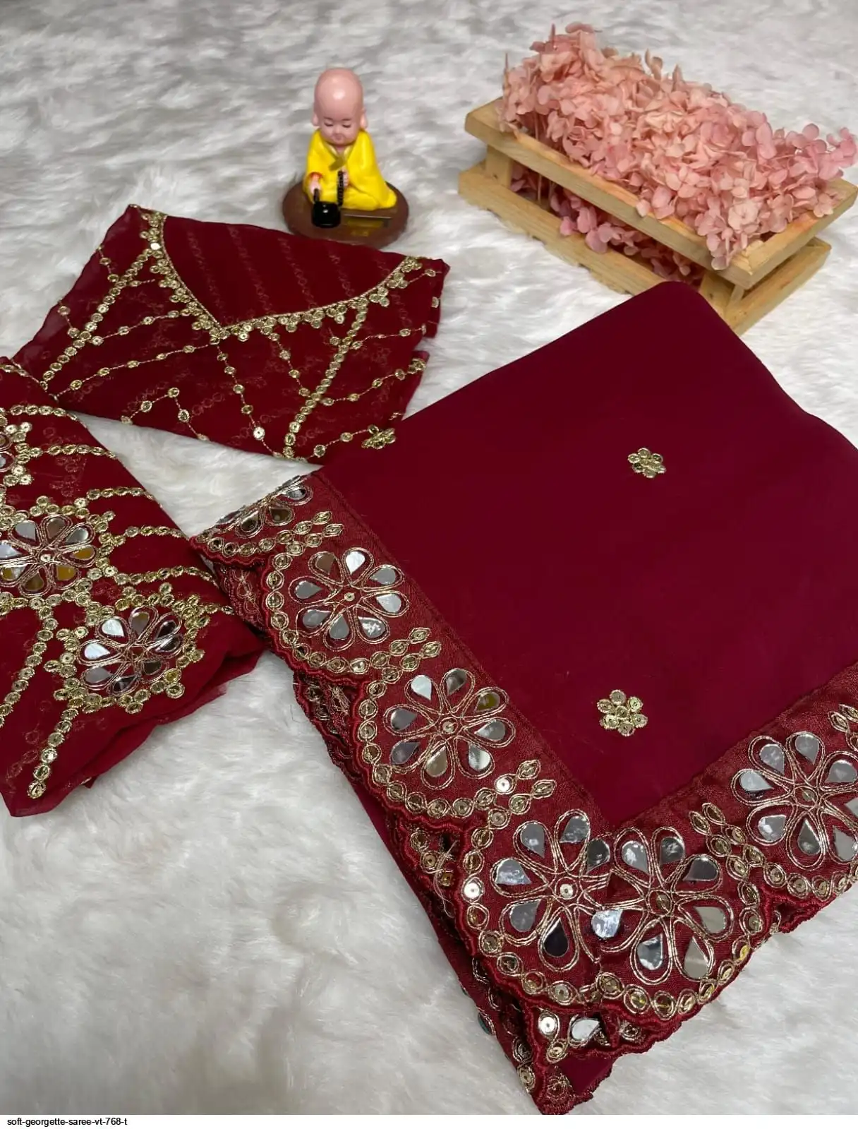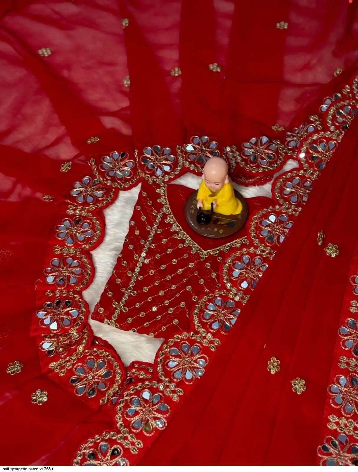 SAREES :Soft Georgette sarees sequence coding with multi thread Arco border.All over sarees sequence butta work and *original mirror *attached in border