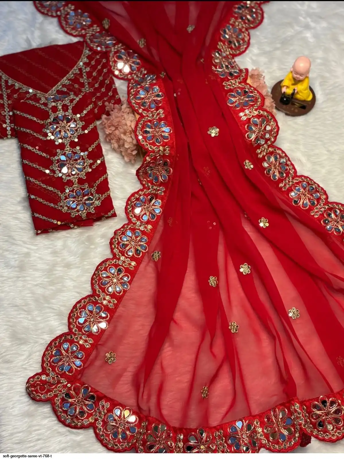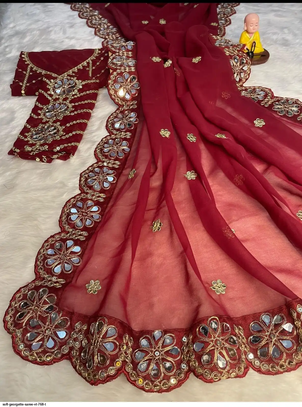 Blouse:-Georgette fabric with embroidery work real mirror attached