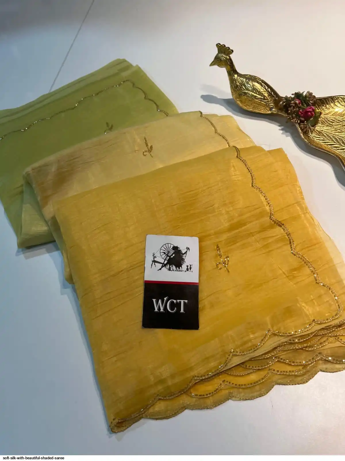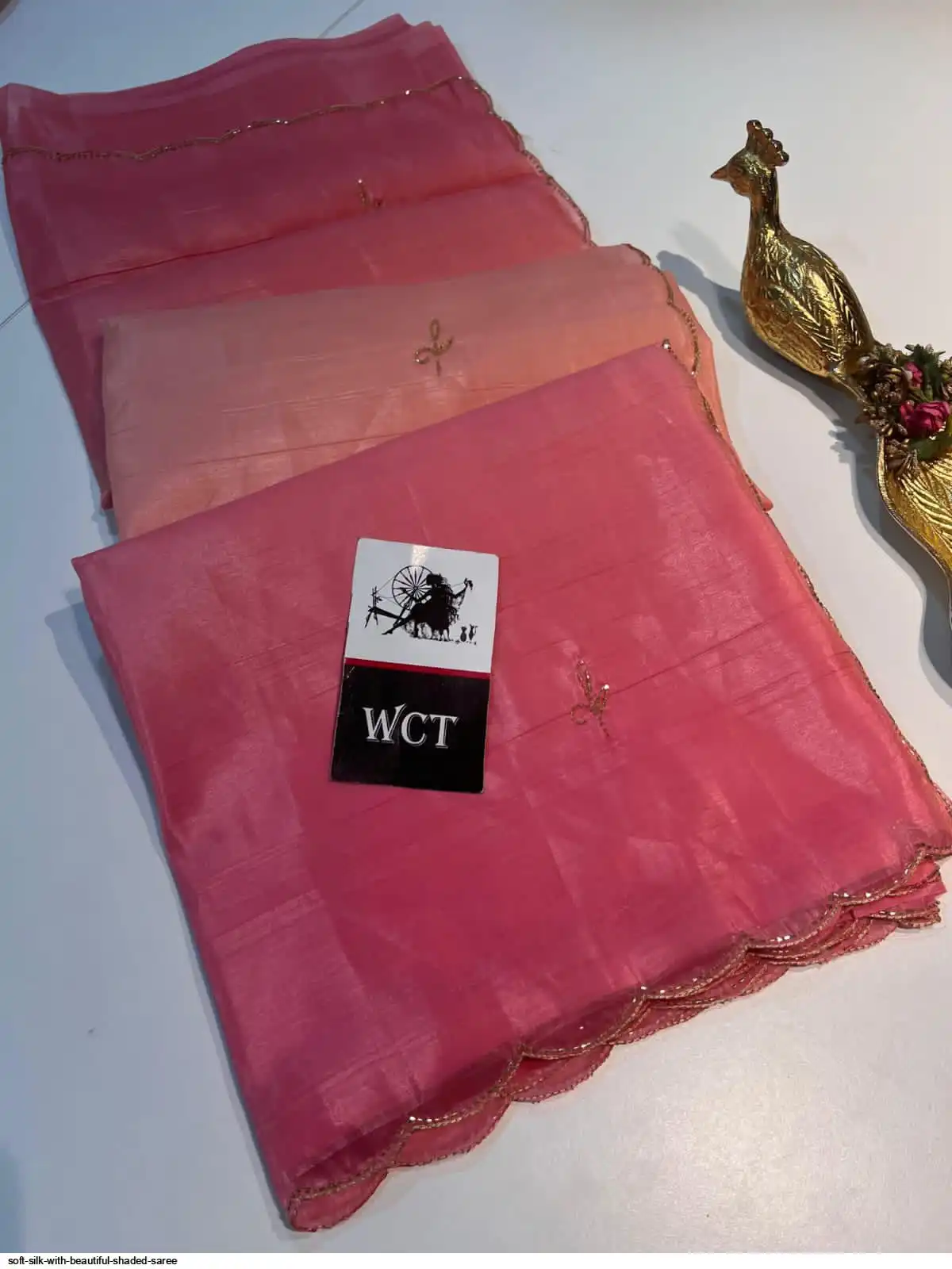 Soft silk saree with beautiful shaded print all over saree cover with handwork and running blouse with work