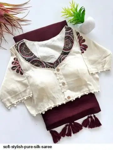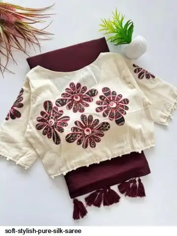 Soft mulmul silk saree with beautiful handmade latkan and pure khaadi blouse with beautiful kalamkarti printed butta all over blouse