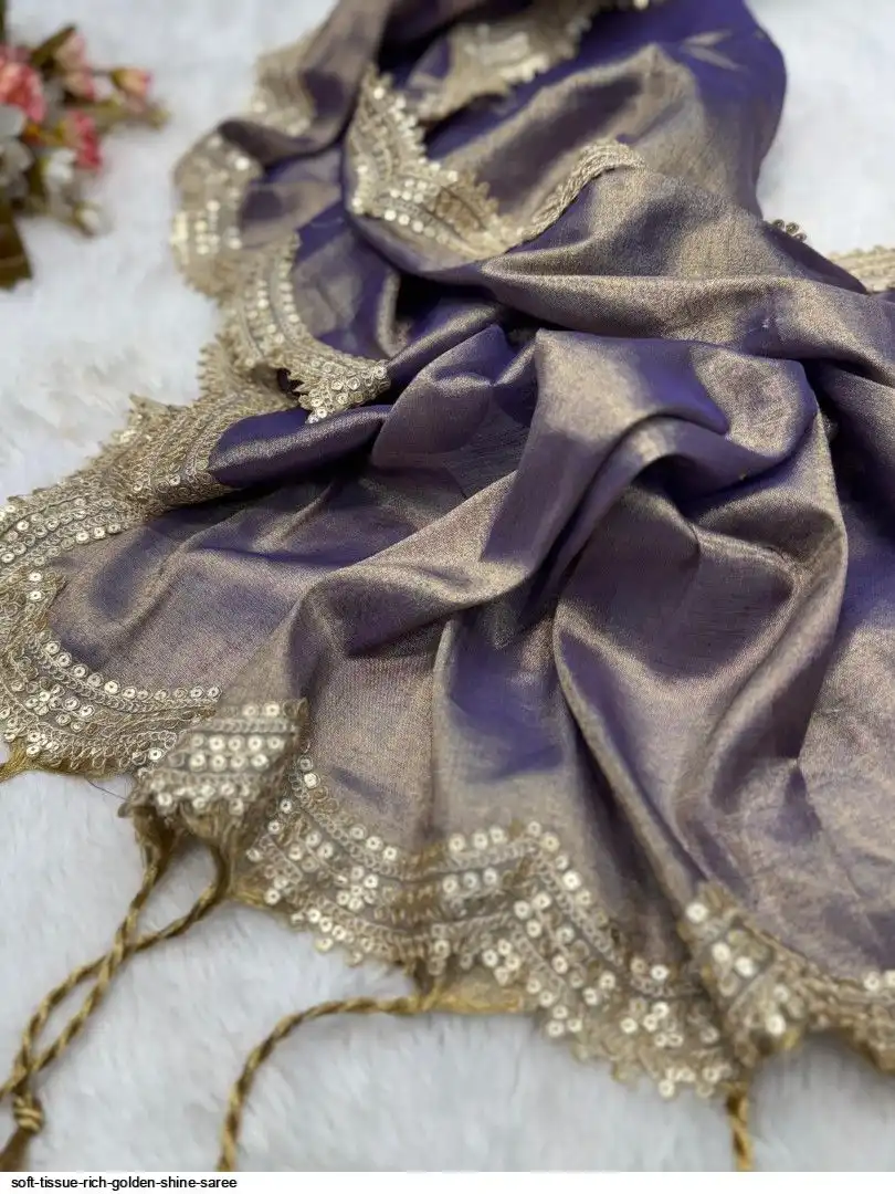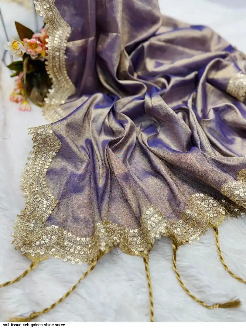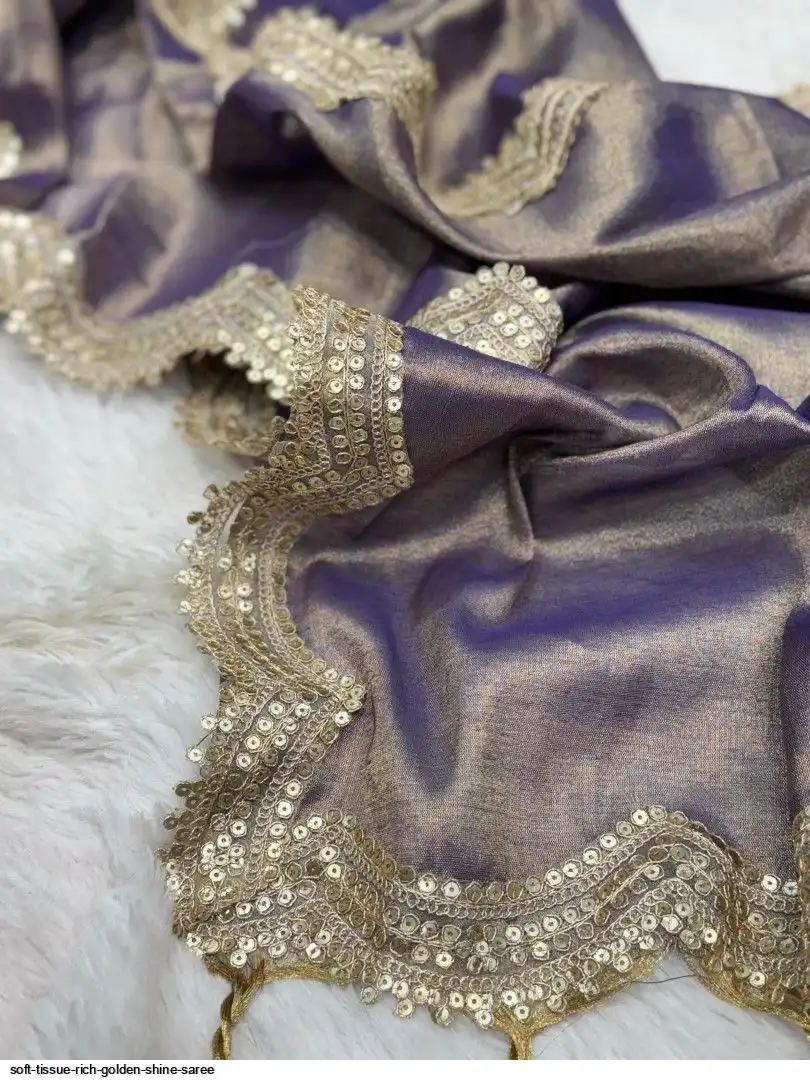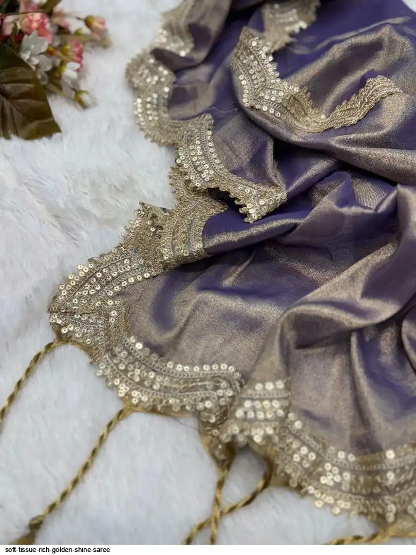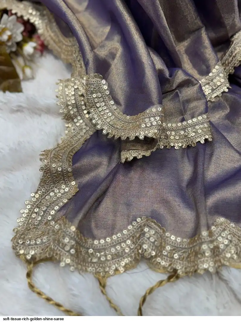 RICH TISSUE TWO TONE GOLDEN WEAVING SOFT FABRIC ALONG WITH RICH SEQUNCE CODING BIGGER LACE 6.30 ALONG WITH RUNNING BLOUSE