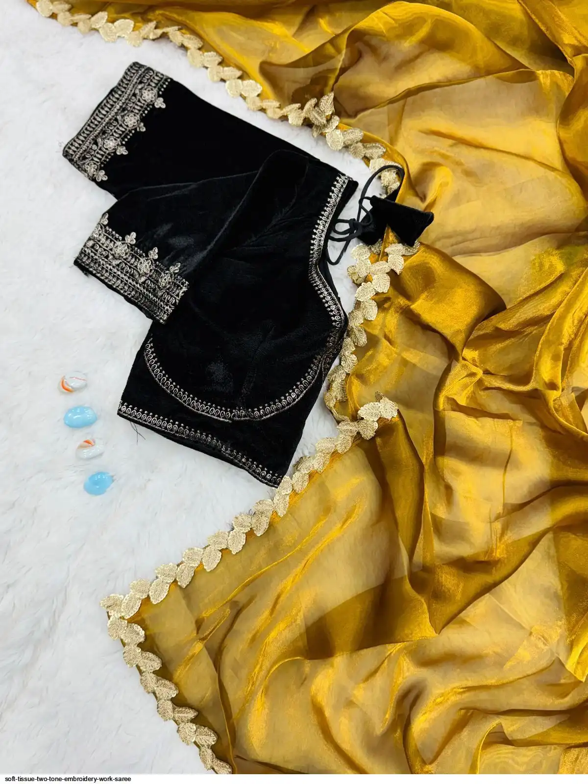 SOFT TISSUE TWO TONE EMBROIDERY WORK SAREE A