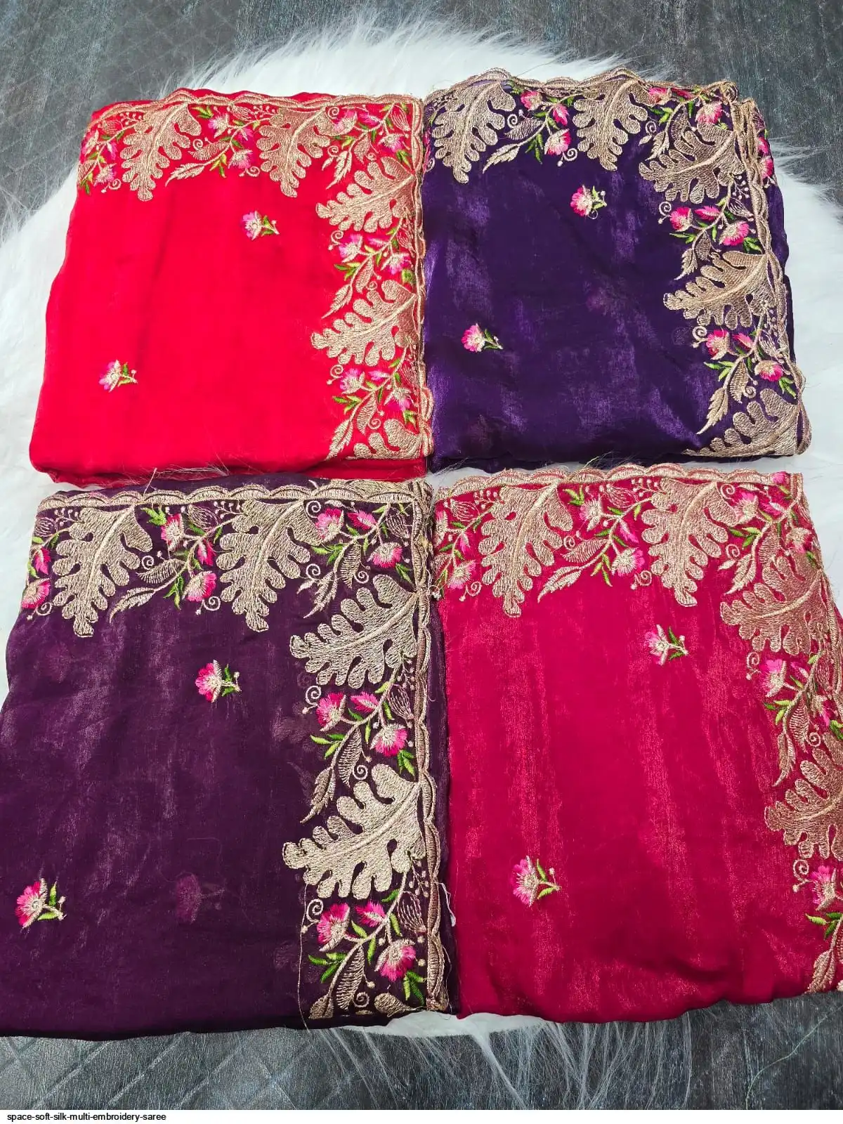 Space Soft Silk Multi Embroidery Work Saree With Running Blouse