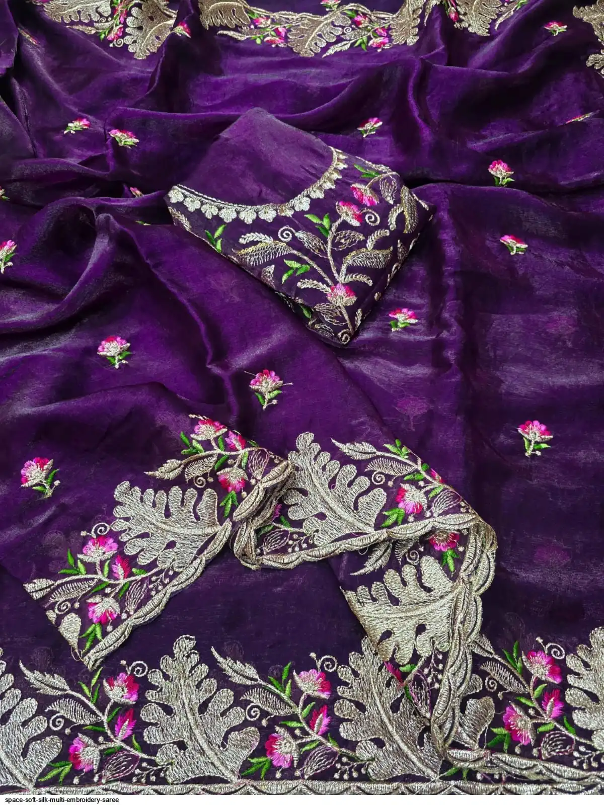 Space Soft Silk Multi Embroidery Work Saree With Running Blouse