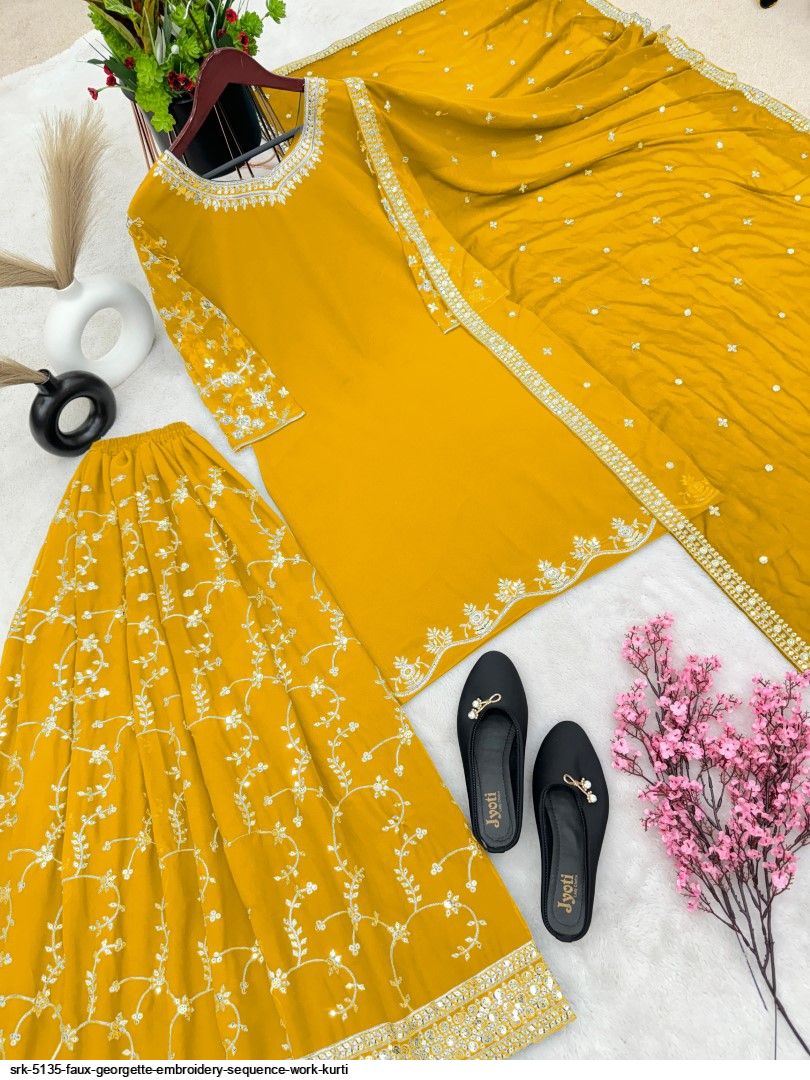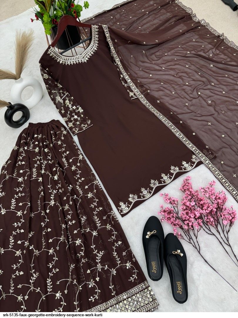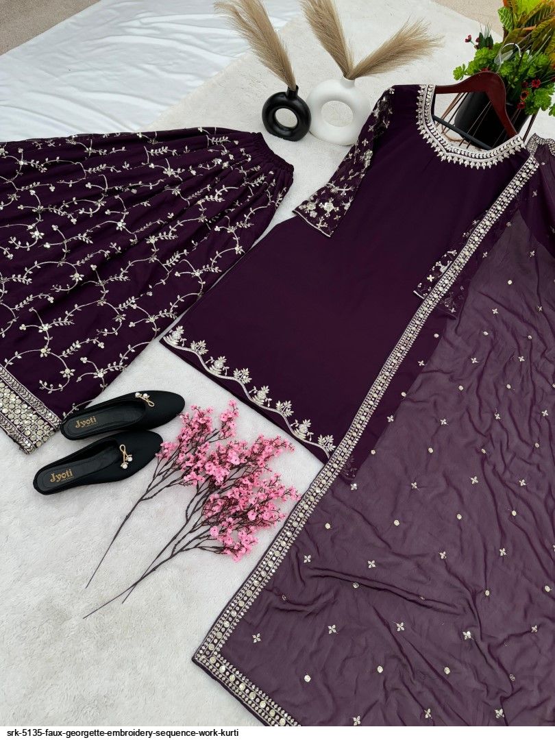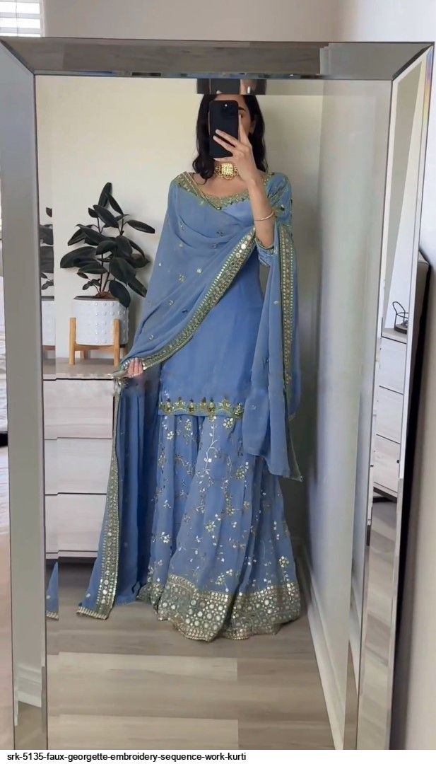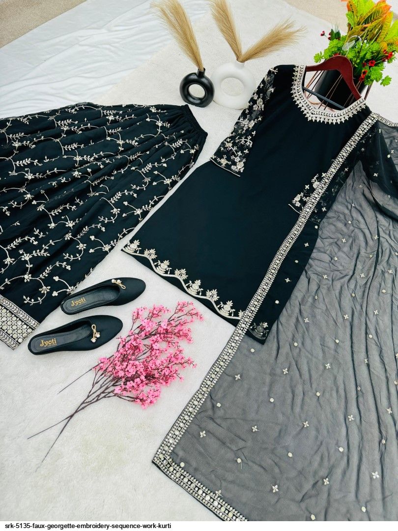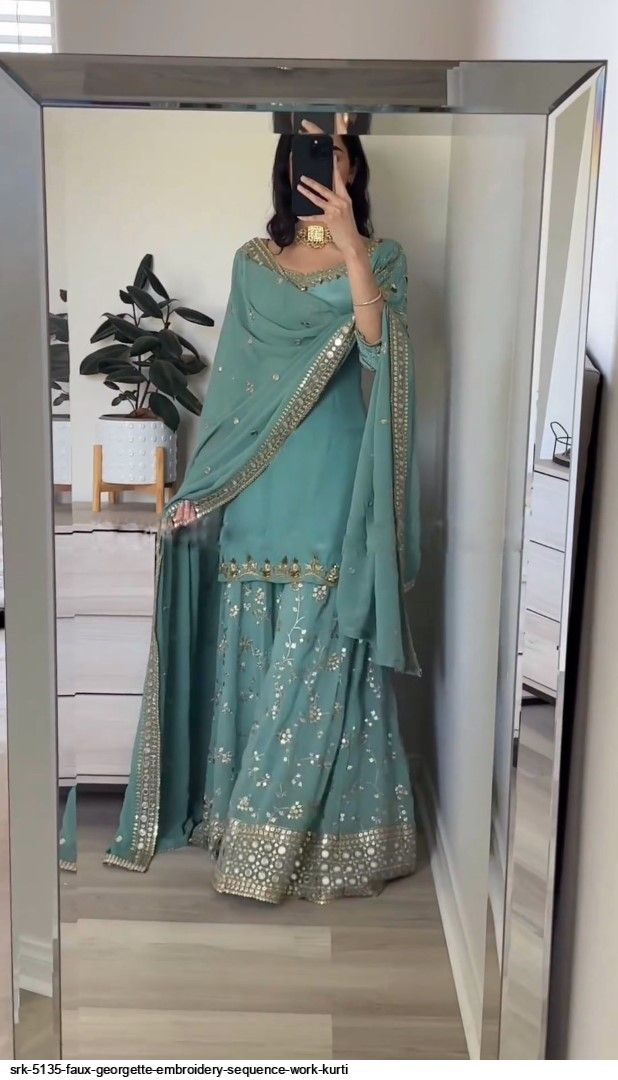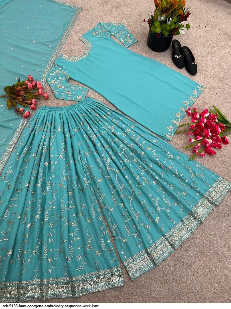 Plazzo Fabrics :Heavy Faux Georgette With 5mm Embroidery Sequence With Fully Flair