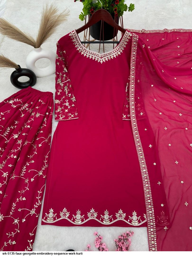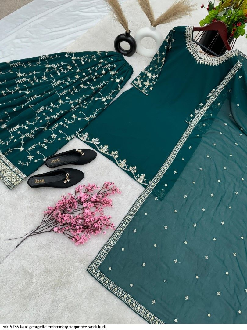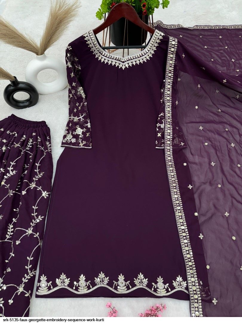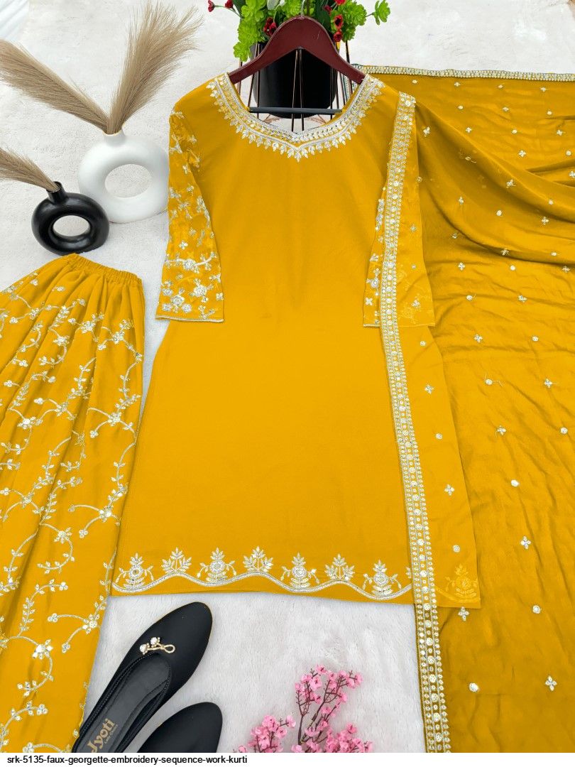 Top Fabric :Heavy Faux Georgette With 5mm Embroidery Sequence Work With Full Sleeve