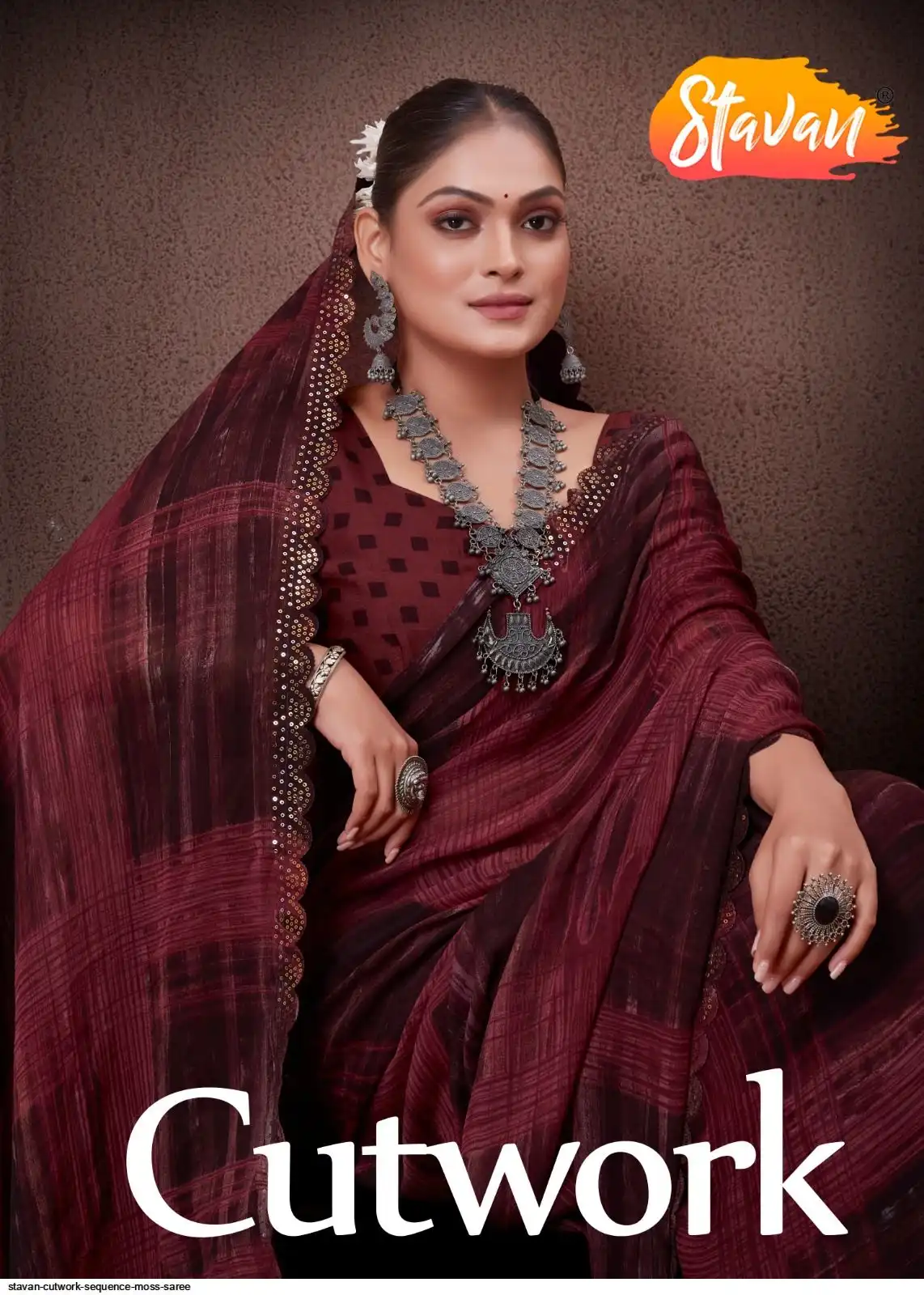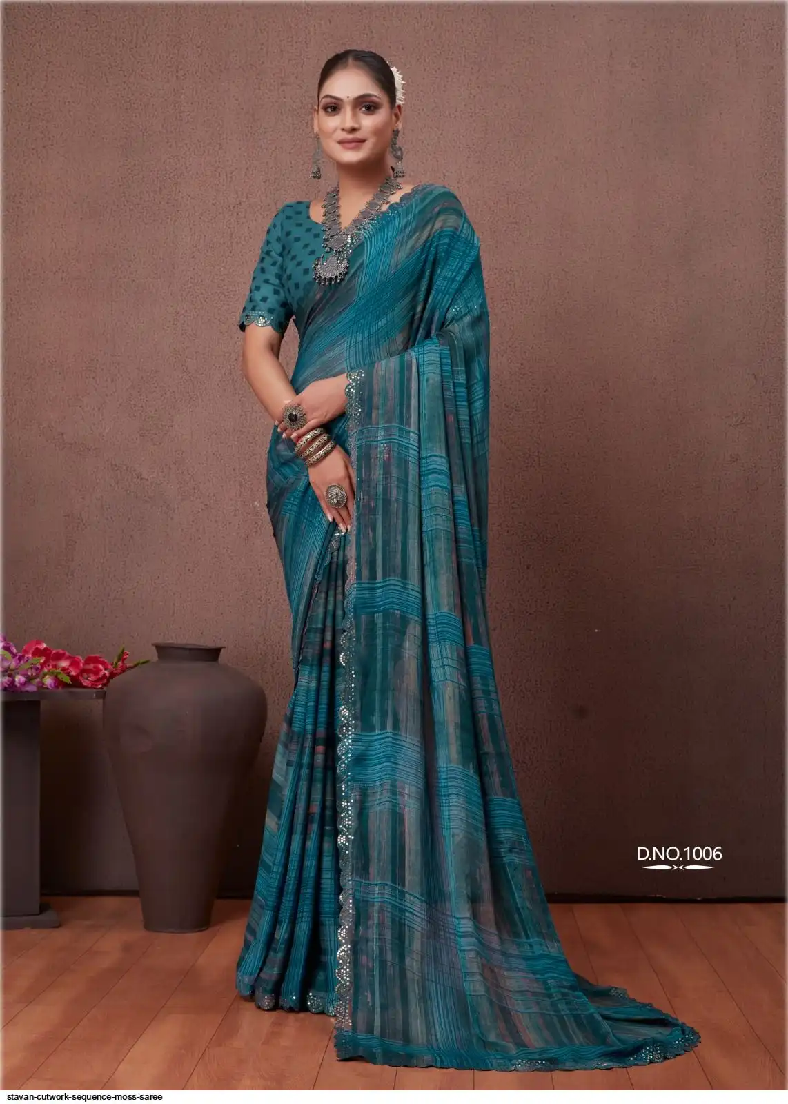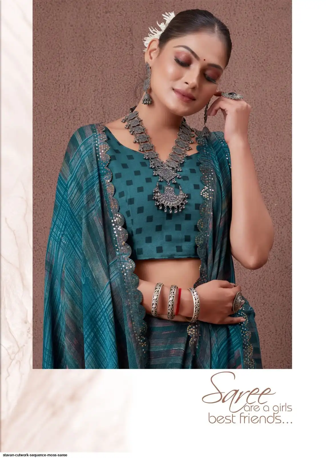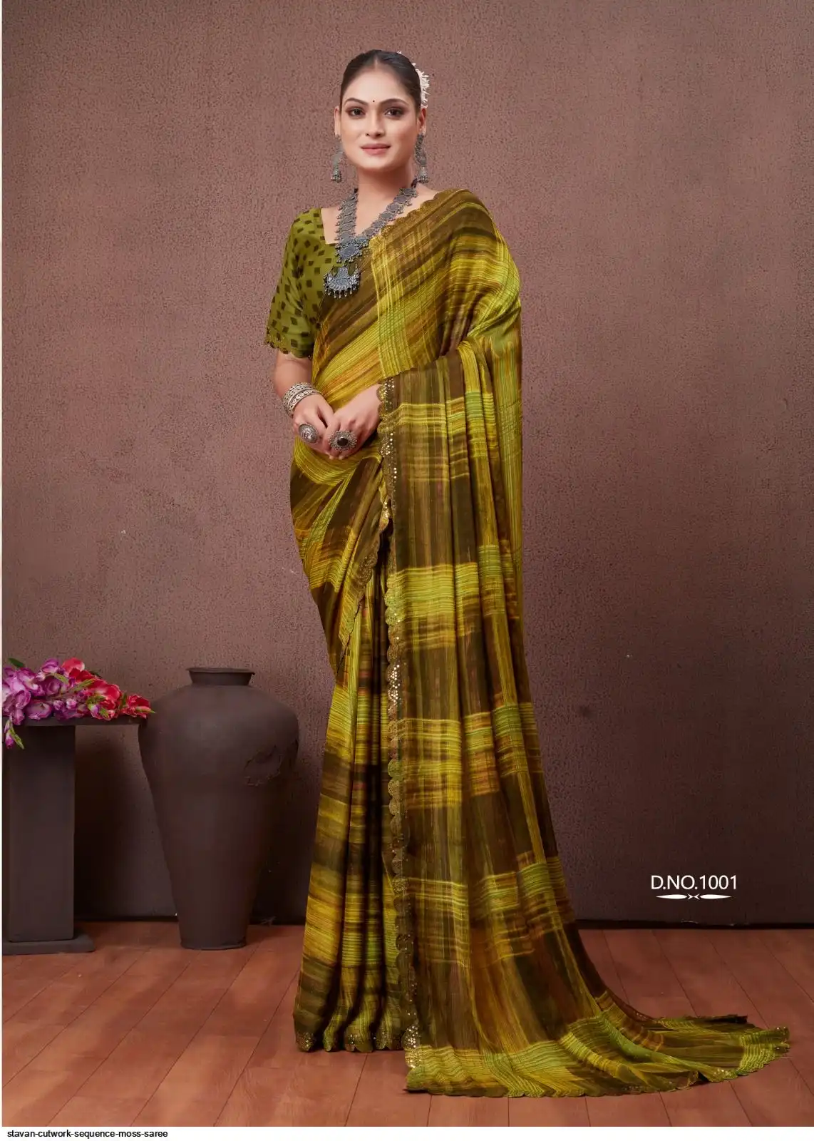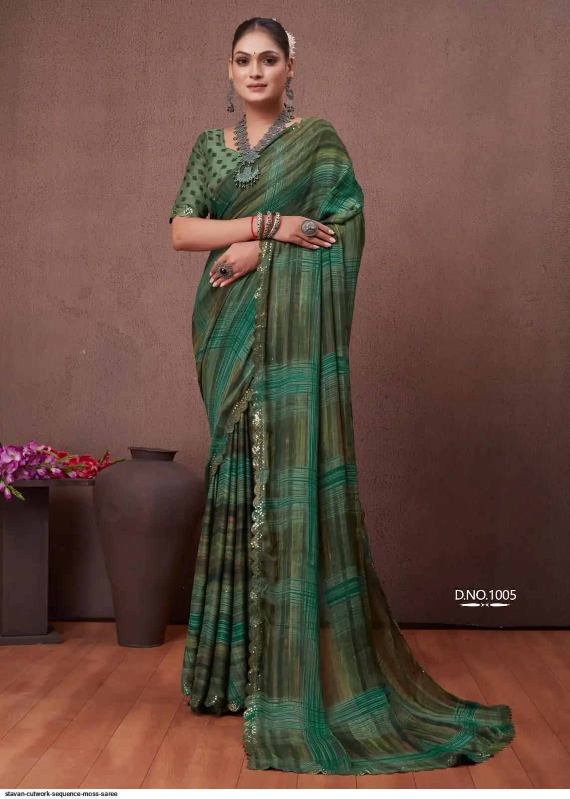 SEQUENCE CUTWORK IN MOSS FABRIC
