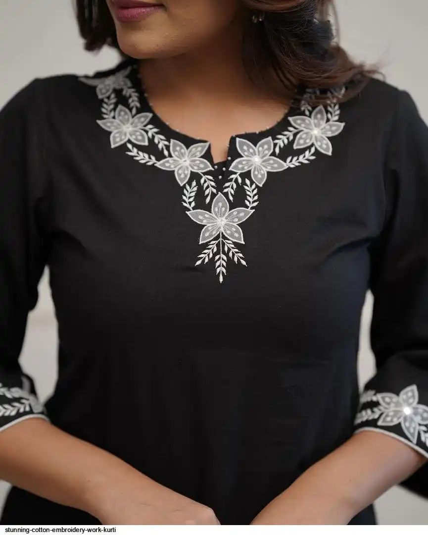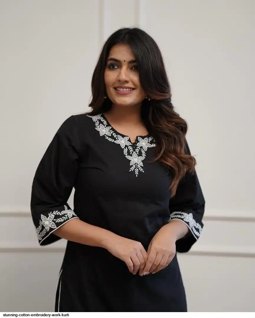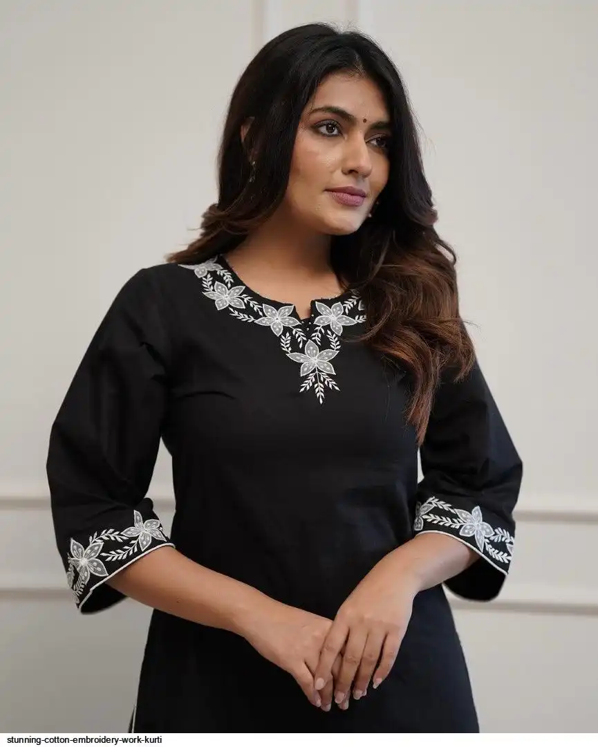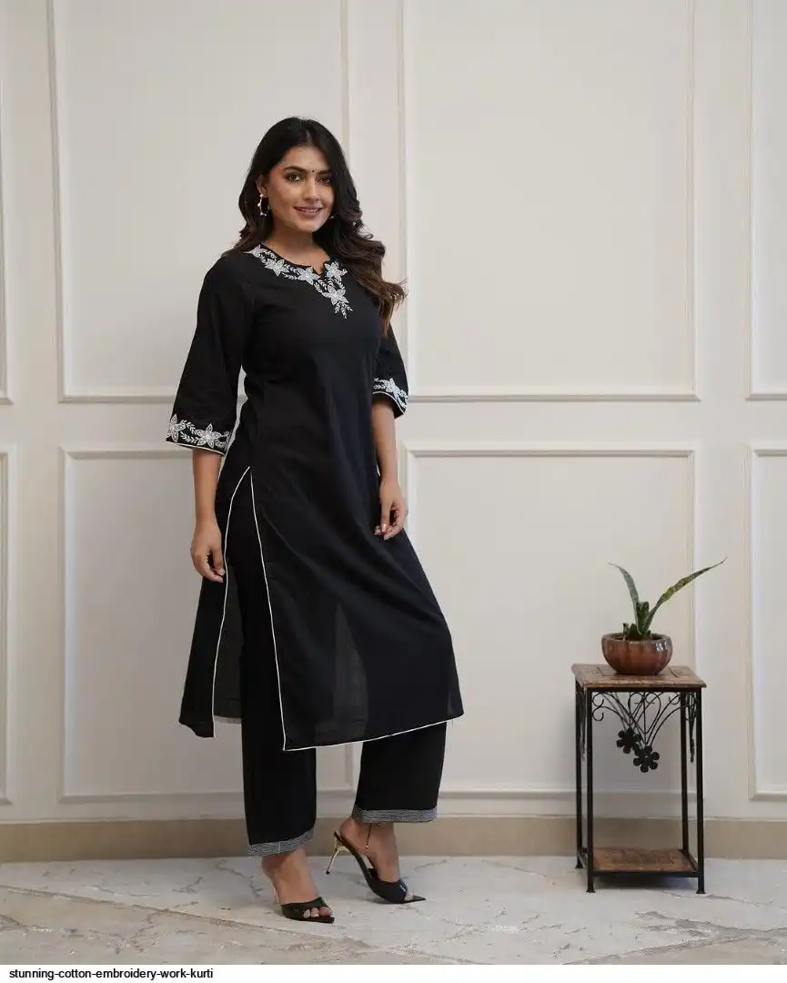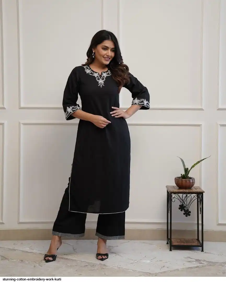 Upgrade your office wear wardrobe with this classy black kurti palazzo with beautiful embroidery & tool dori work detailing for all day comfort and trendy look