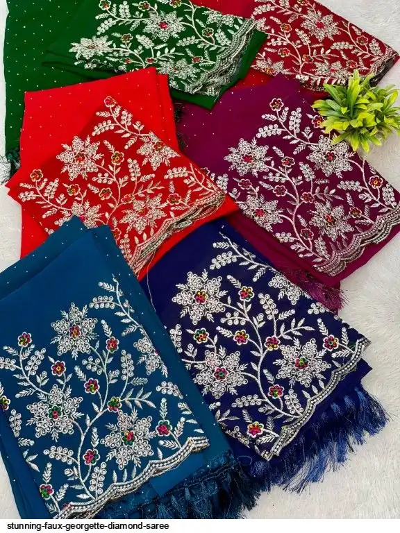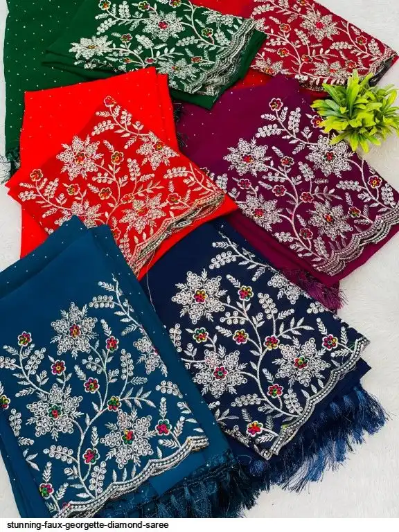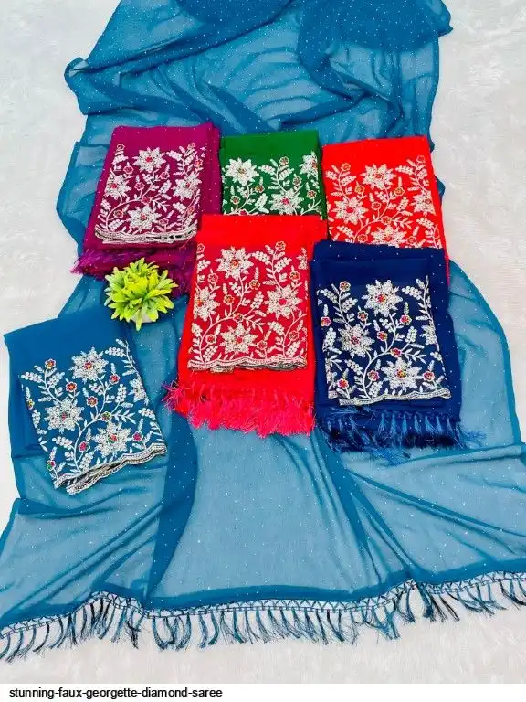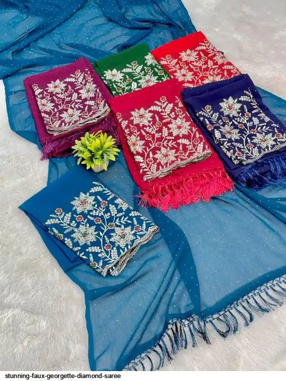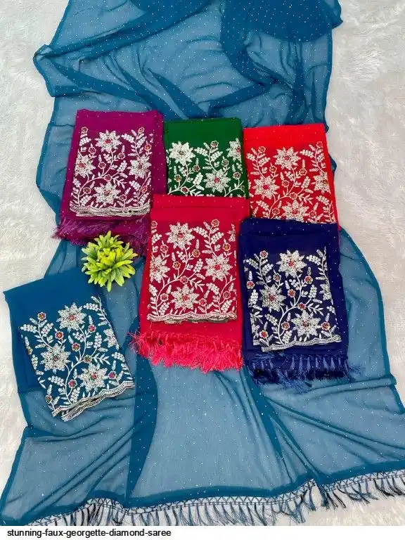 Fabric:-Faux georgette saree with All over sirsoki diamond with fancy