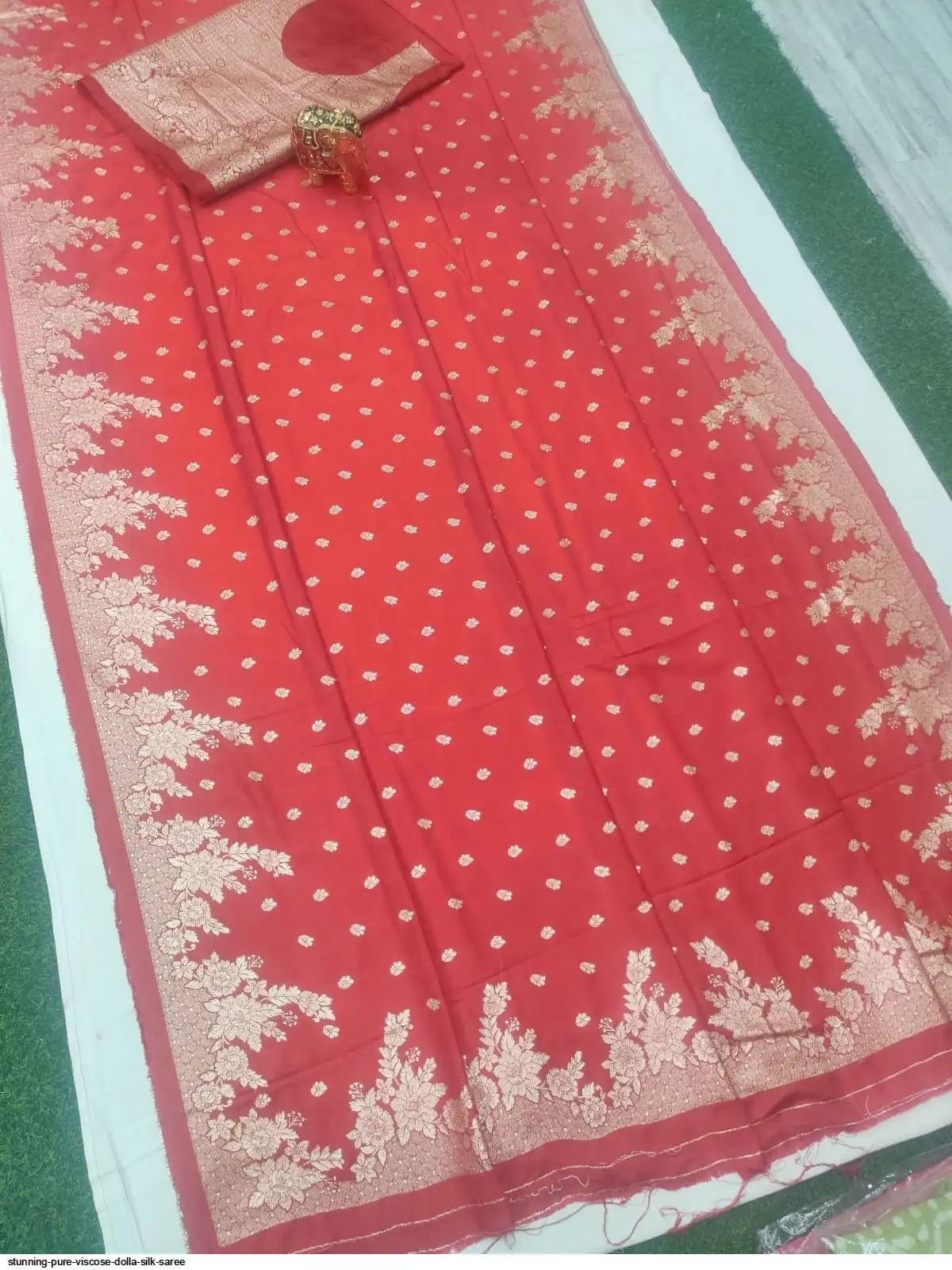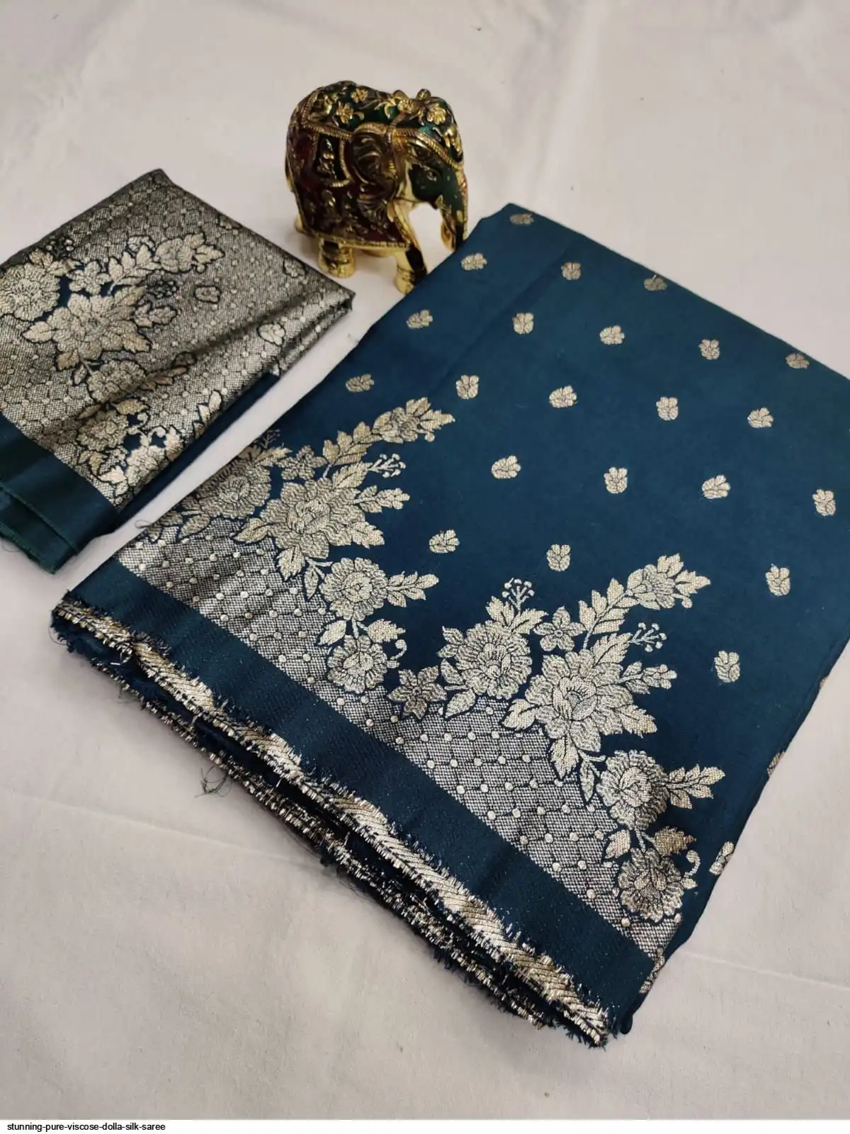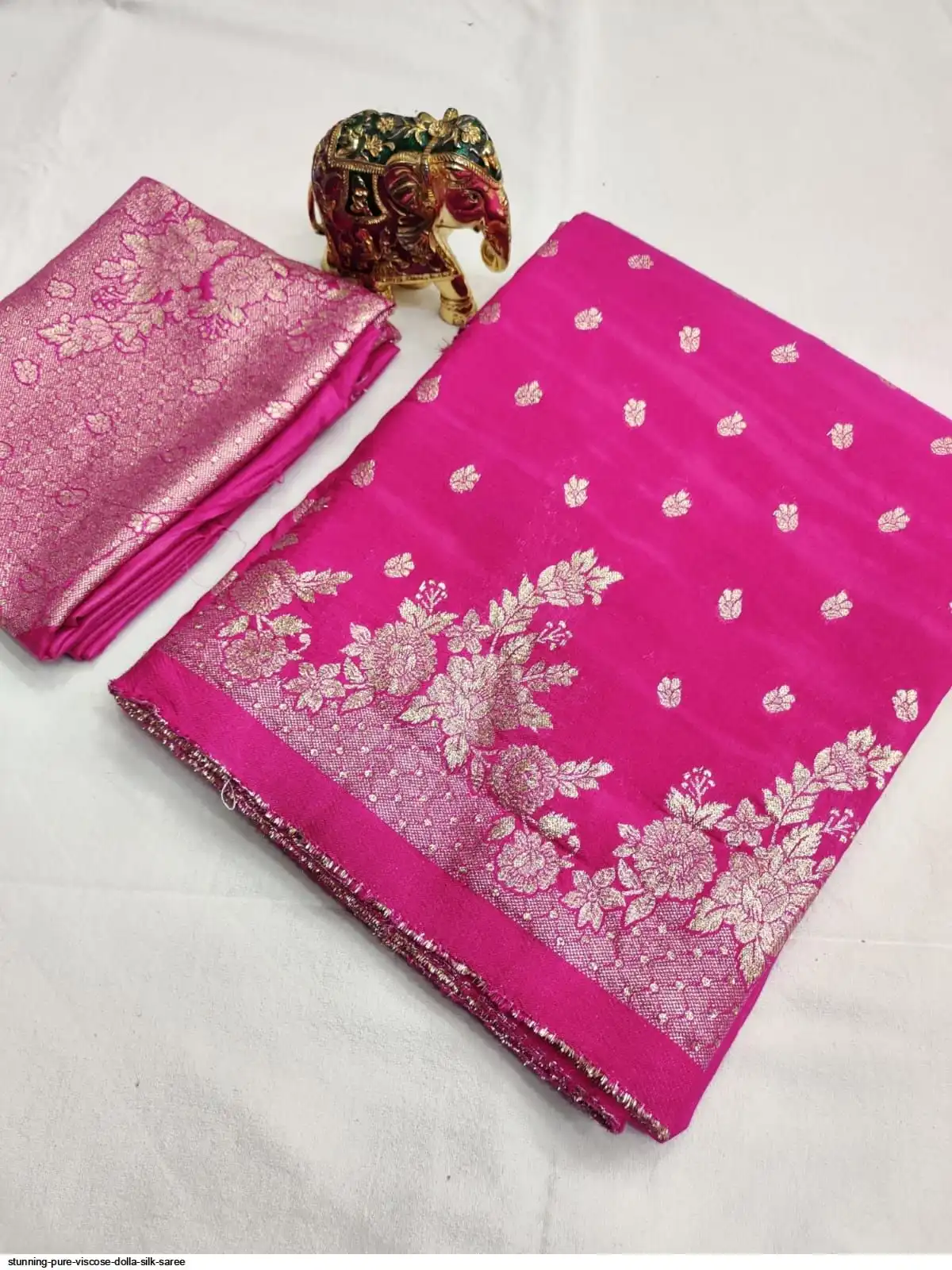 Saree :~ Pure viscose Dolla Silk Saree with Beautiful jacquard weaving with whole saree Zari jacquard Weaving Border Saree
