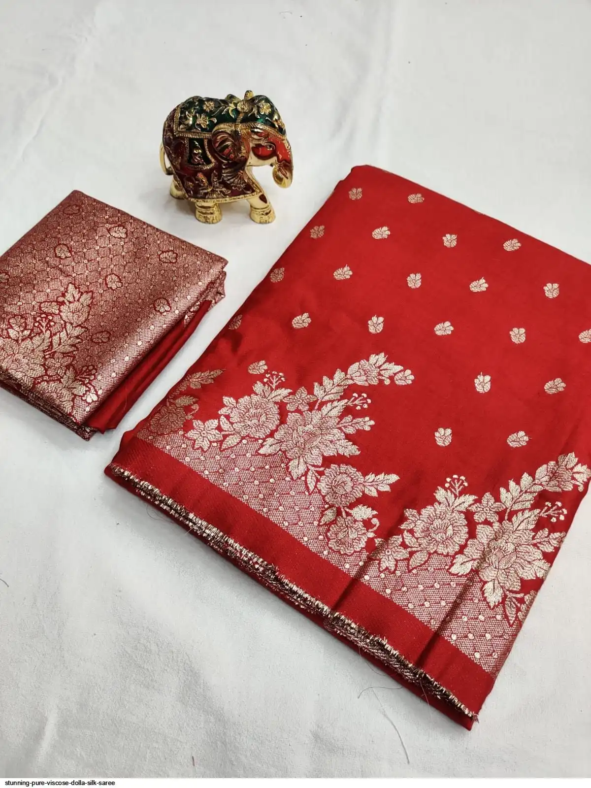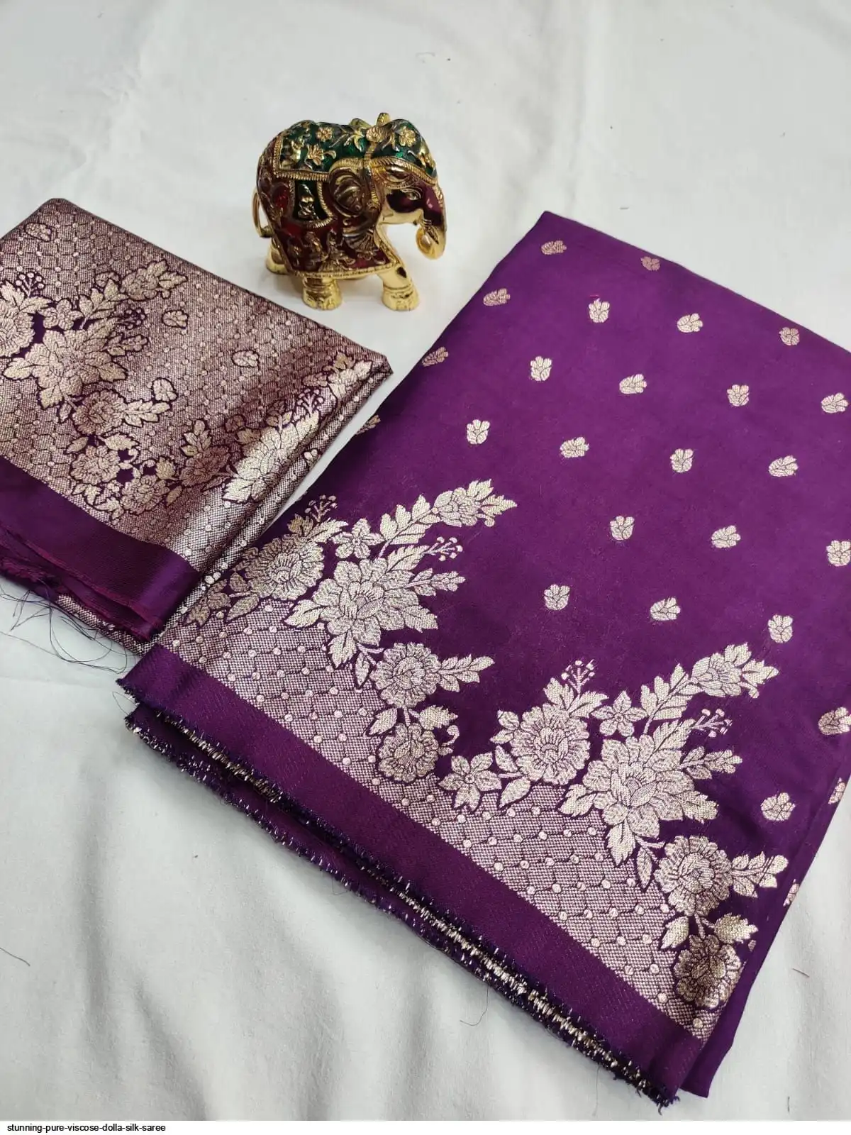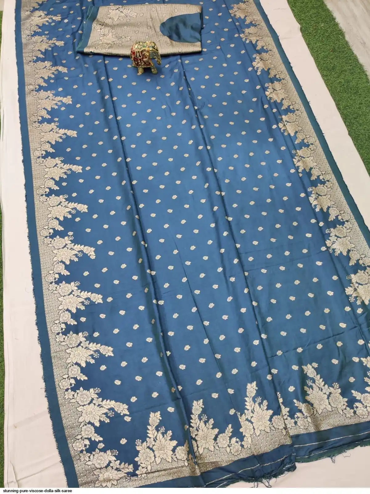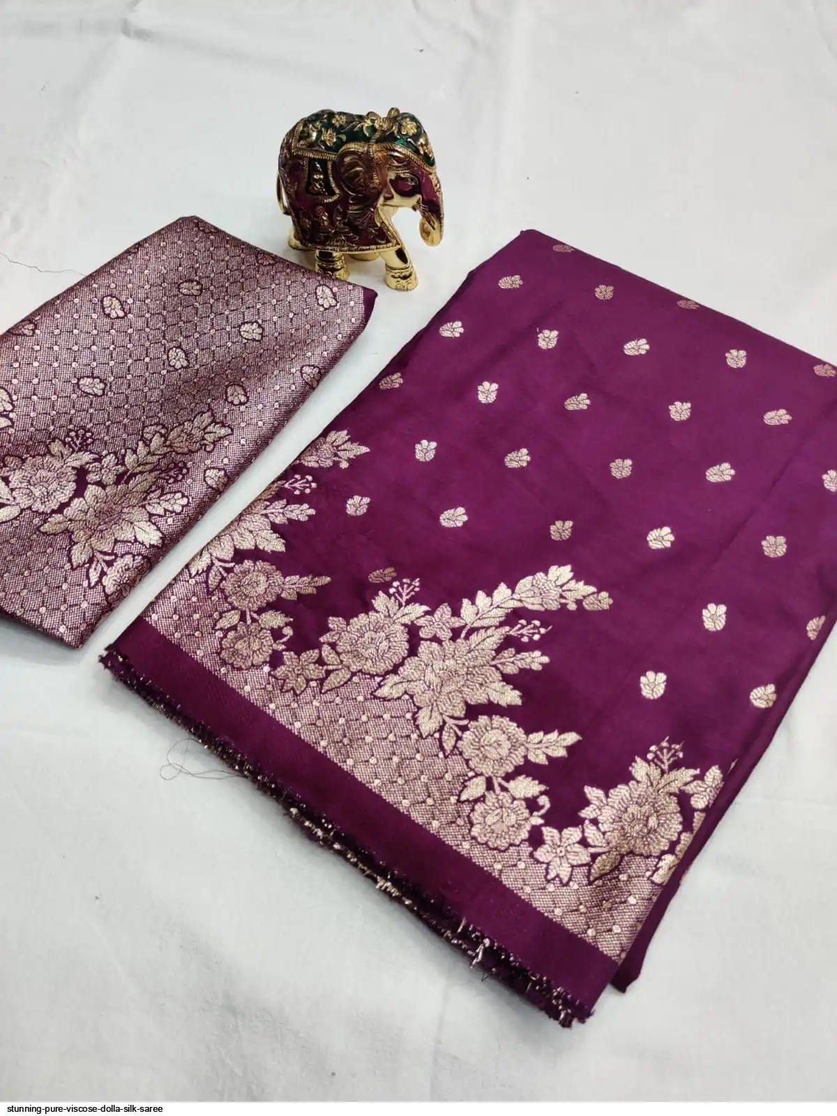 Saree :~ Pure viscose Dolla Silk Saree with Beautiful jacquard weaving with whole saree Zari jacquard Weaving Border Saree