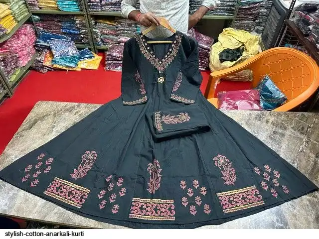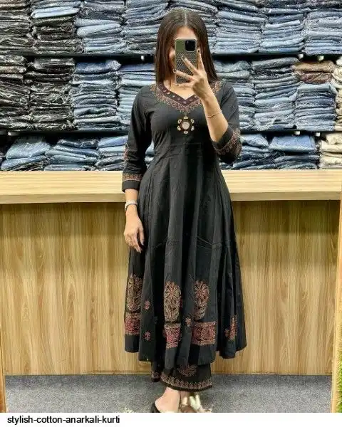 New Anarkali kurta set with new style in saganeri. Hand Buta print