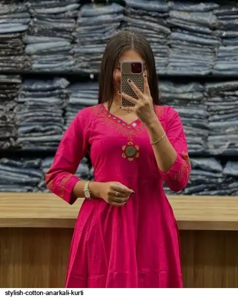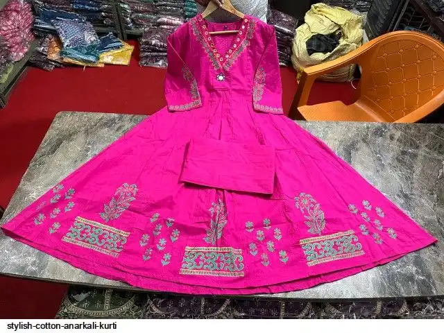 New Anarkali kurta set with new style in saganeri. Hand Buta print