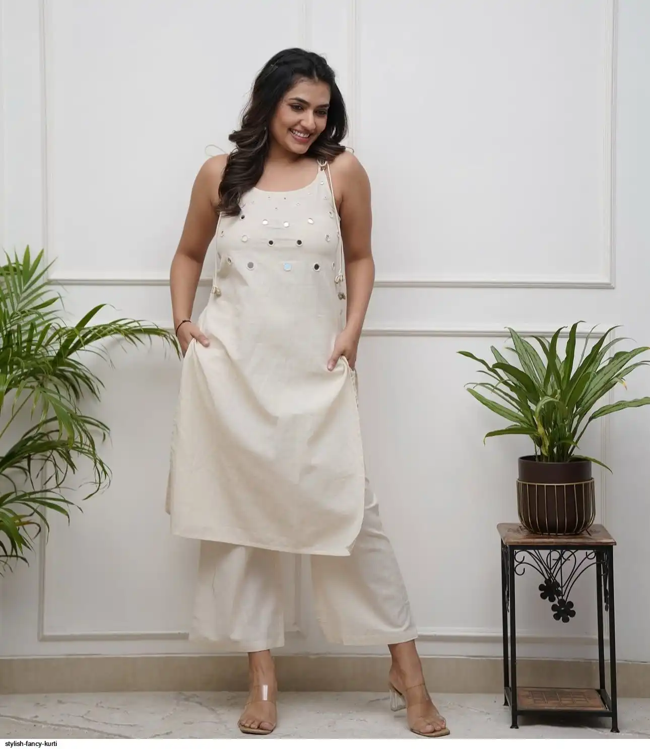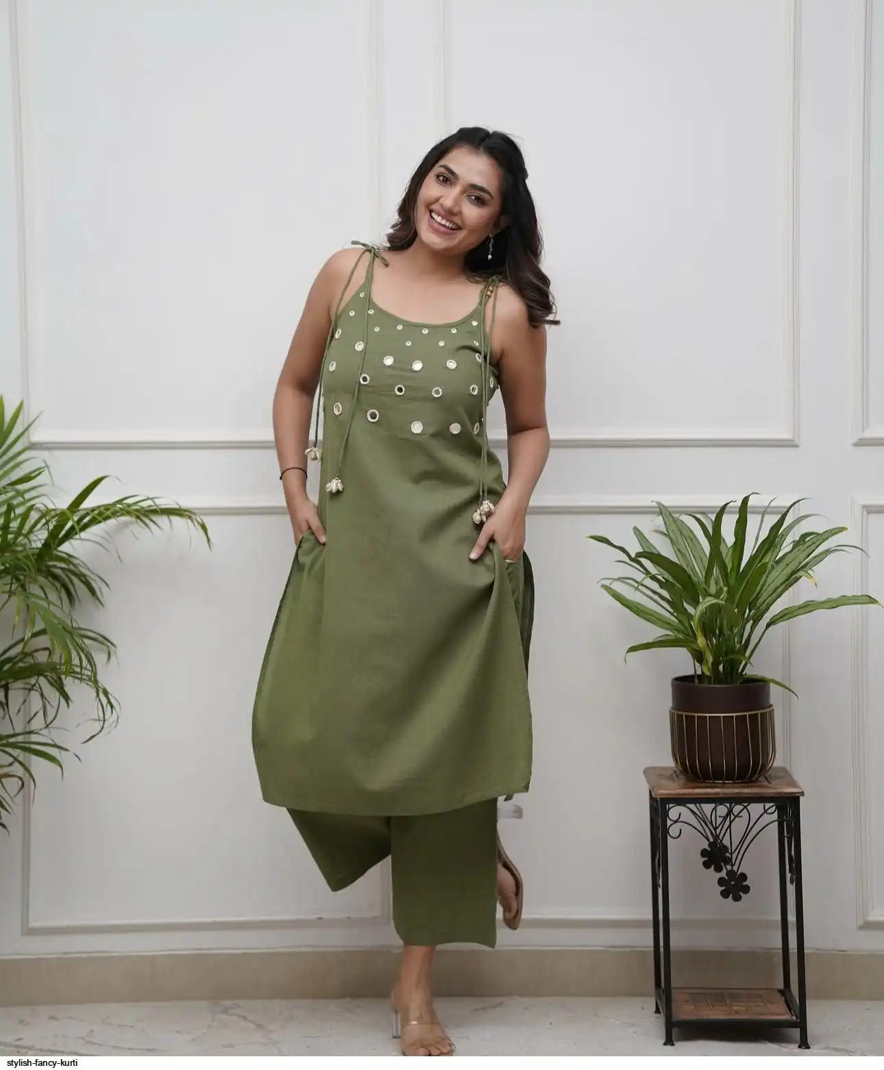 Mirror work on kurti and beautiful tassel work