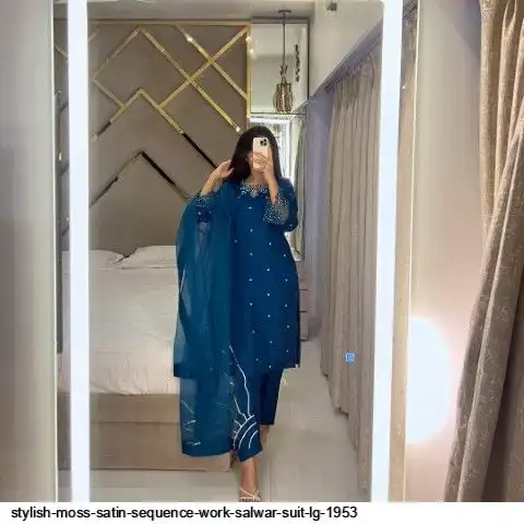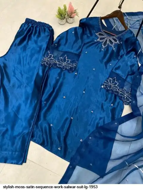 DESIGNER WEAR EXCLUSIVE 3 PIECE SUIT IN BEADS WORK ON KURTI,PLAIN PANT WITH ORGANZA DUPATTA