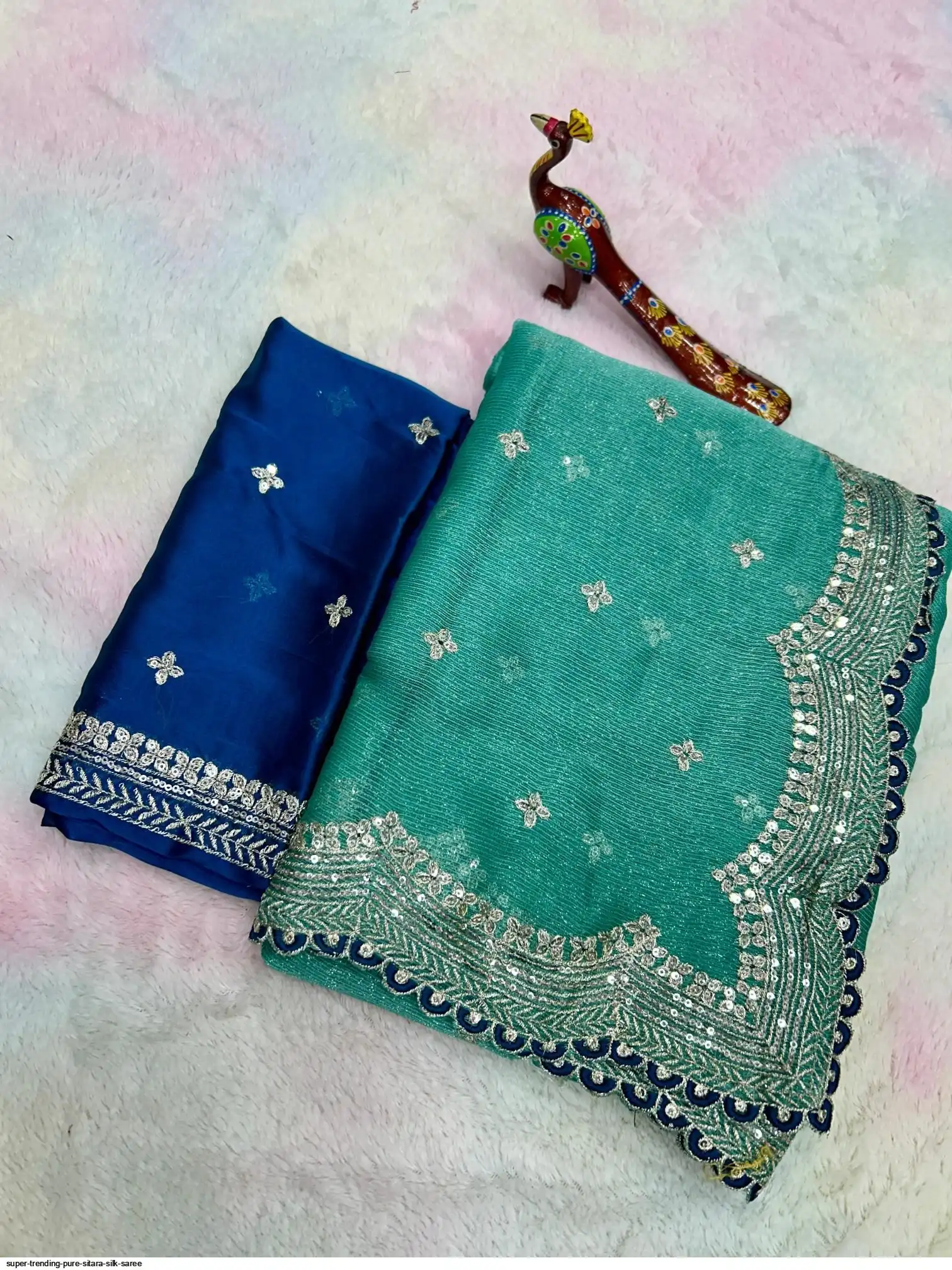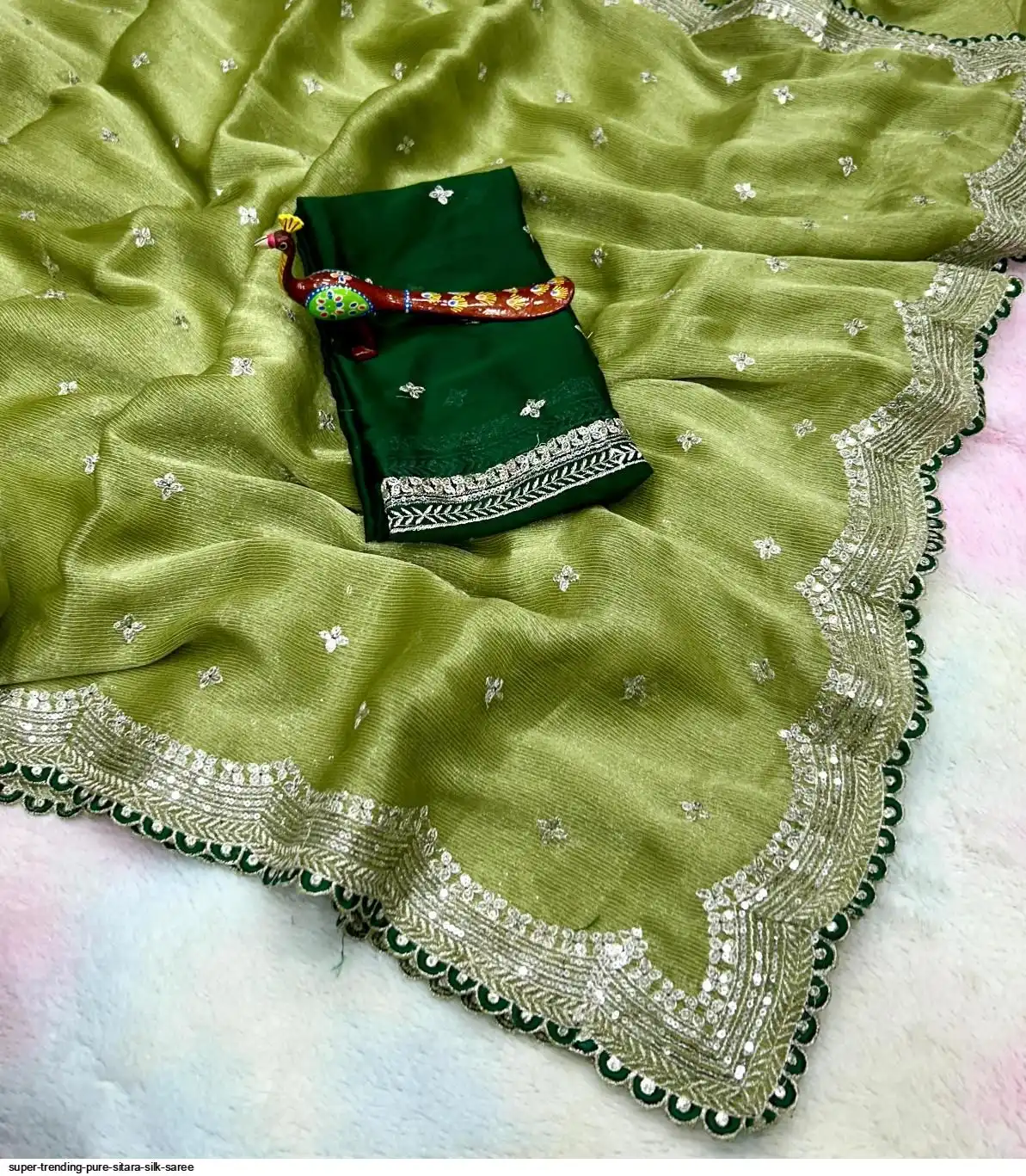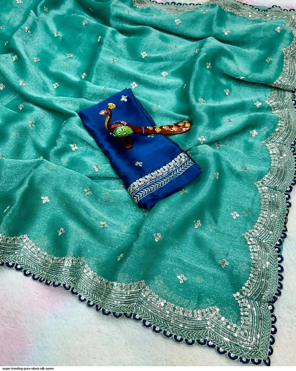 SAREE :- Pure Sitara Silk Thread Embroidery Lace and also zari and sequins work on all over the saree