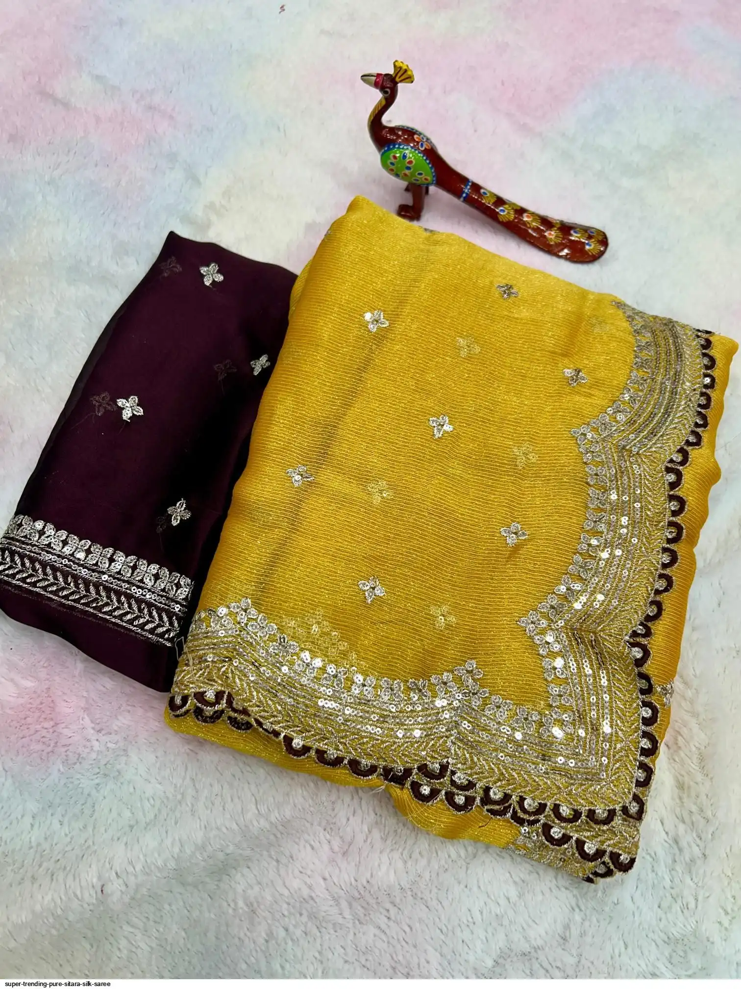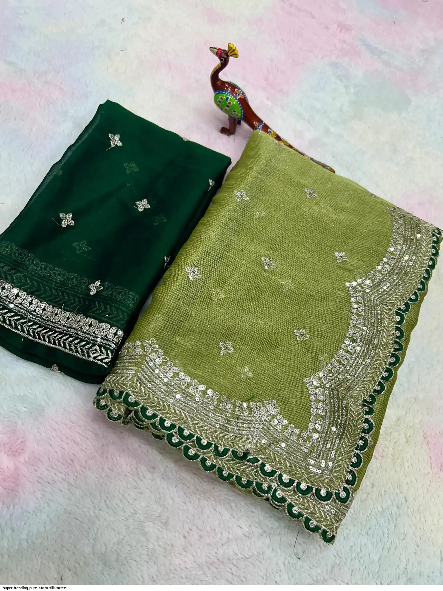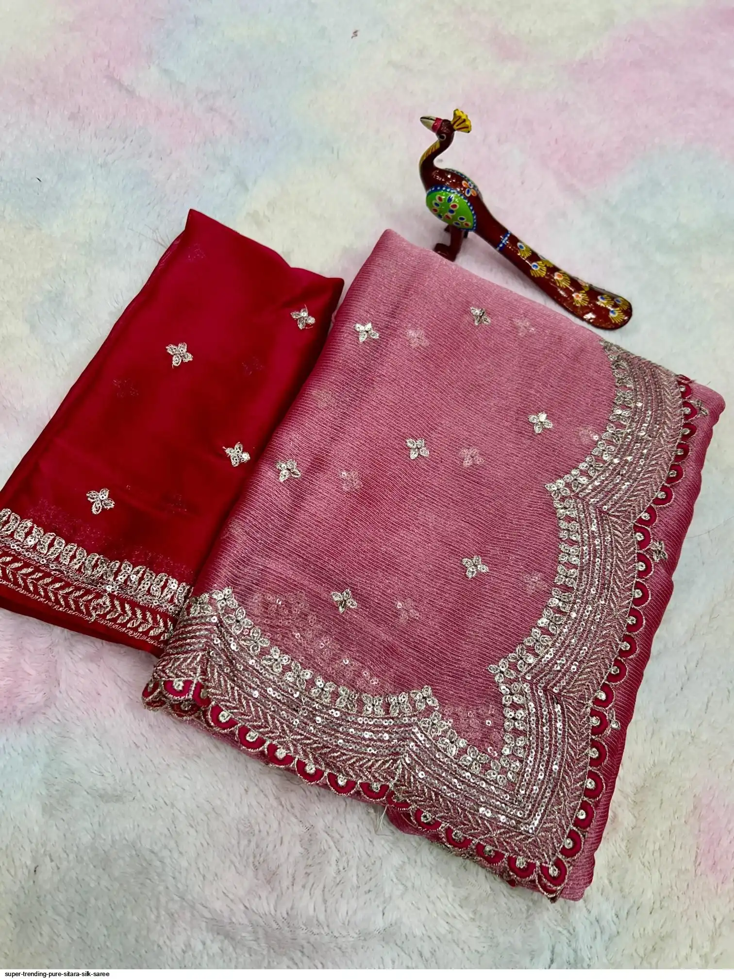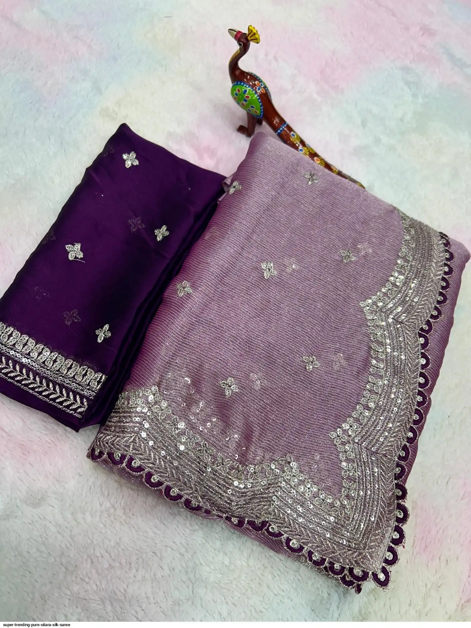 SAREE :- Pure Sitara Silk Thread Embroidery Lace and also zari and sequins work on all over the saree