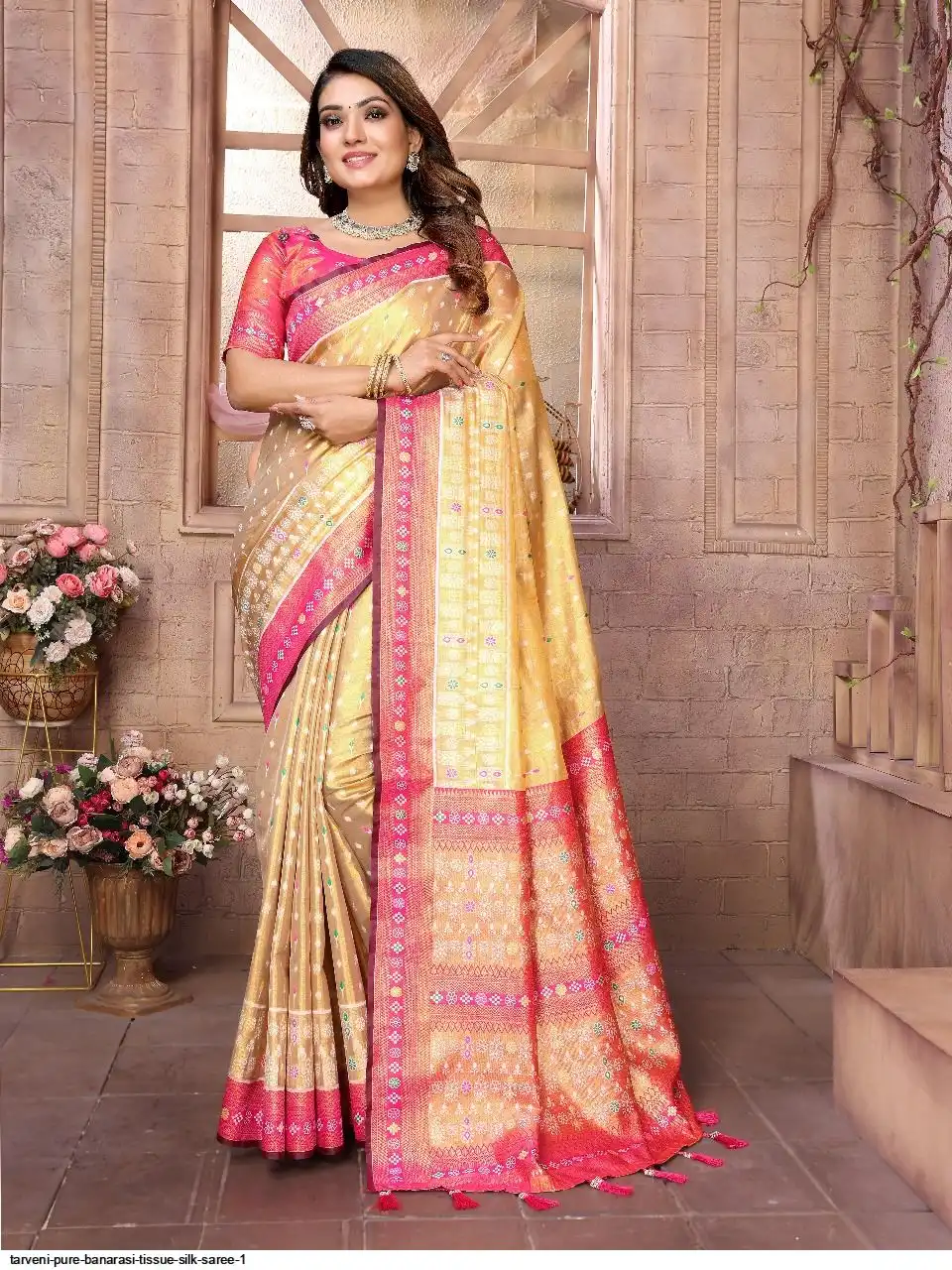 These superior and premium pure banarasi tissue silk (Patola weaving) sarees with all over weaving butties